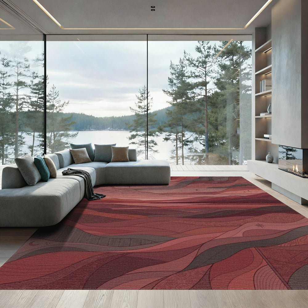 Crimson layered landscape abstract Rug