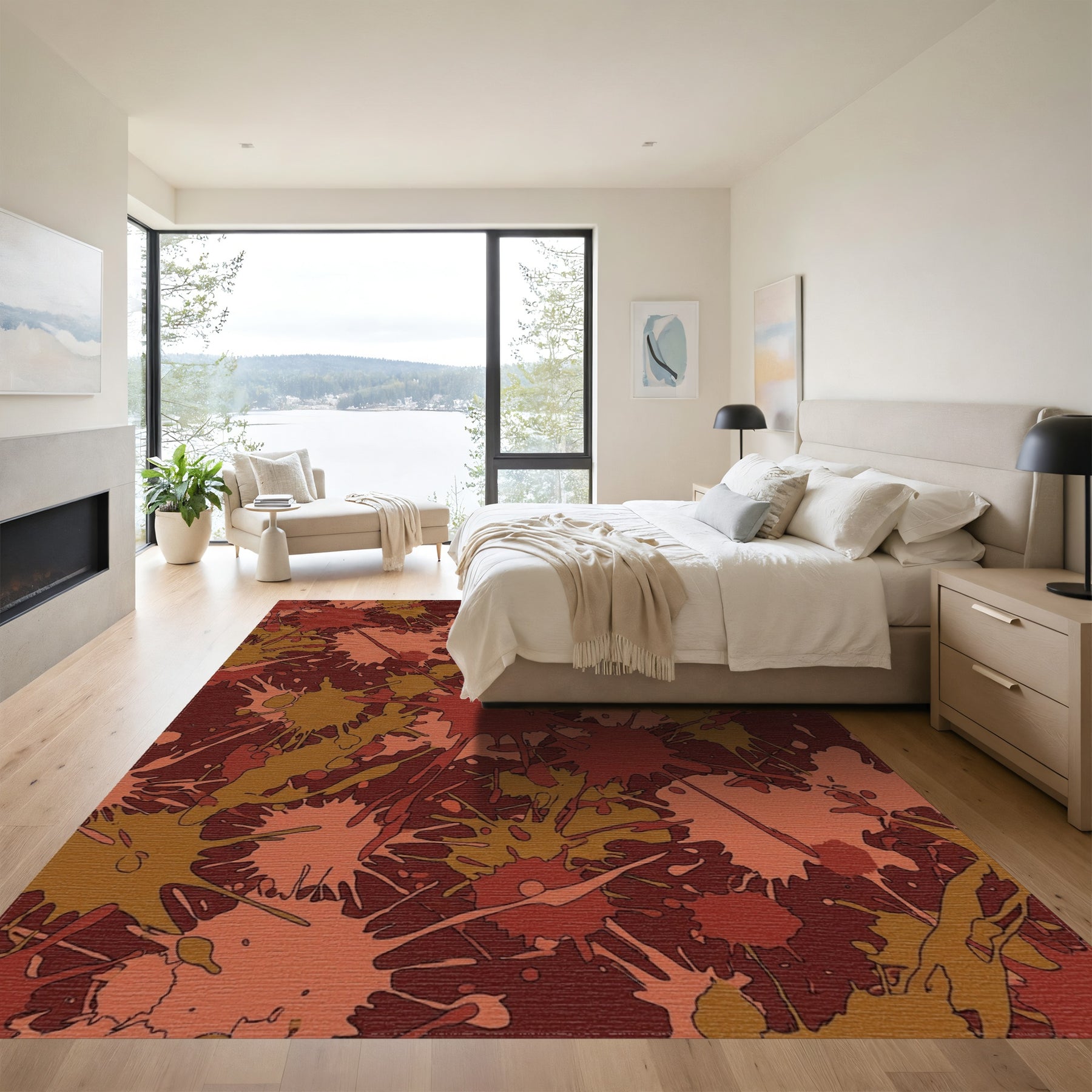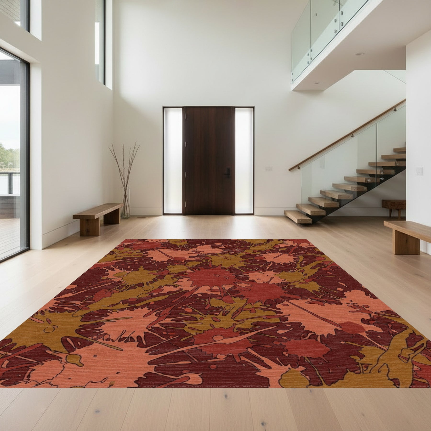 Flatwoven High Traffic Area Rug, Crimson Earth Tones Splatter Graphic Rug, Non Slip, Stain Resistant, Washable Area Rugs for Living Room, Bedroom Overview: