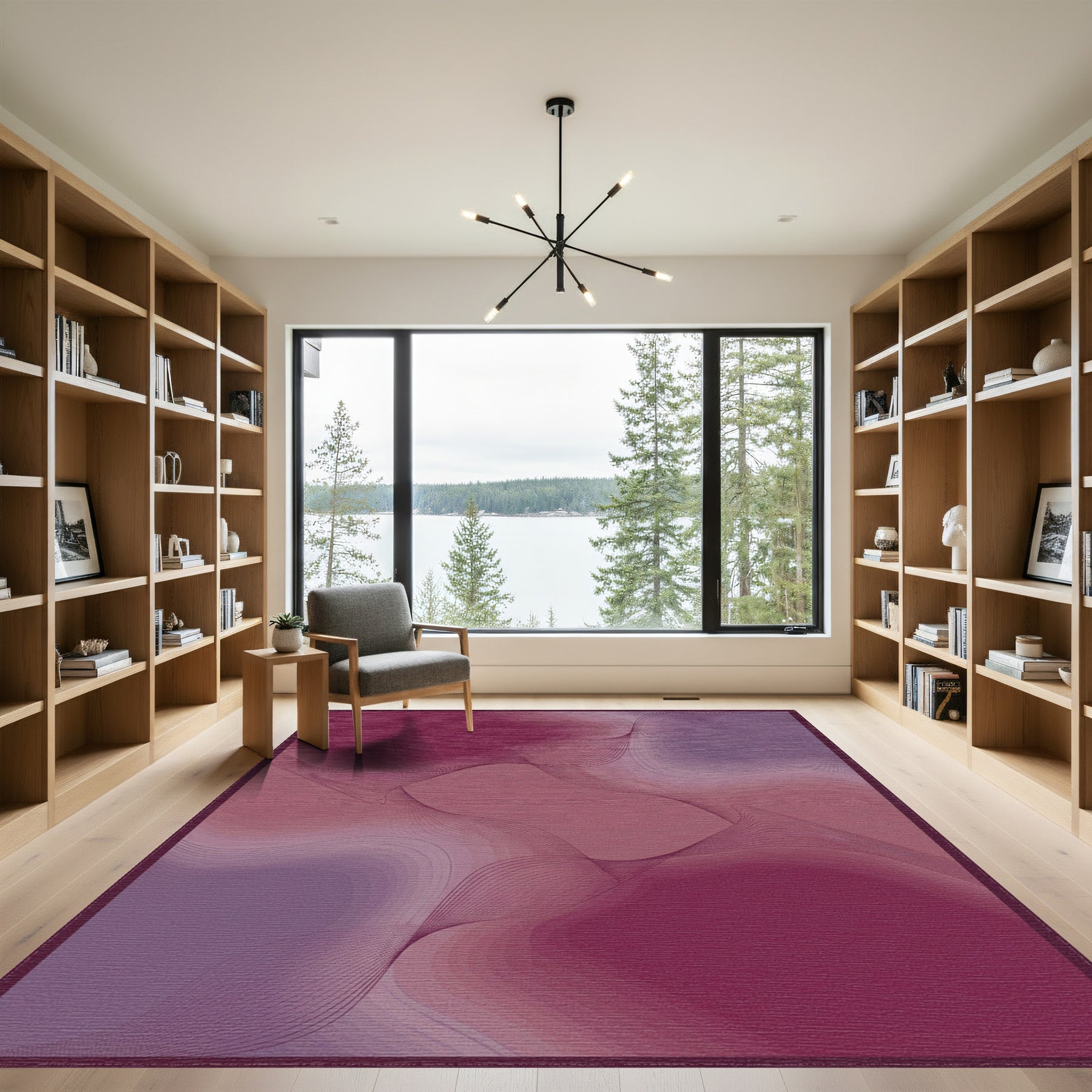 Flatwoven High Traffic Area Rug, Crimson Plum Gradient Swirl Rug, Non Slip, Stain Resistant, Washable Area Rugs for Living Room, Bedroom Overview: