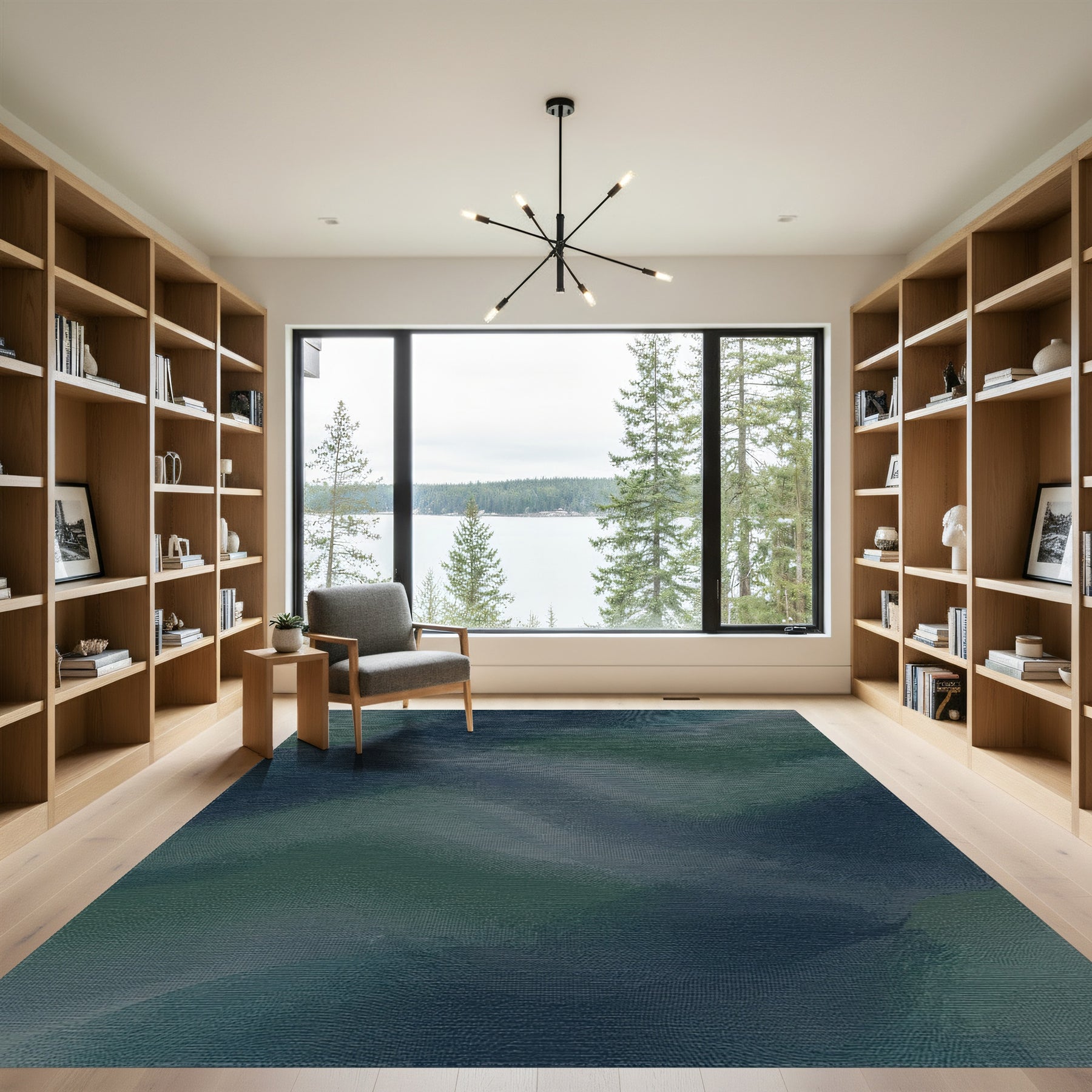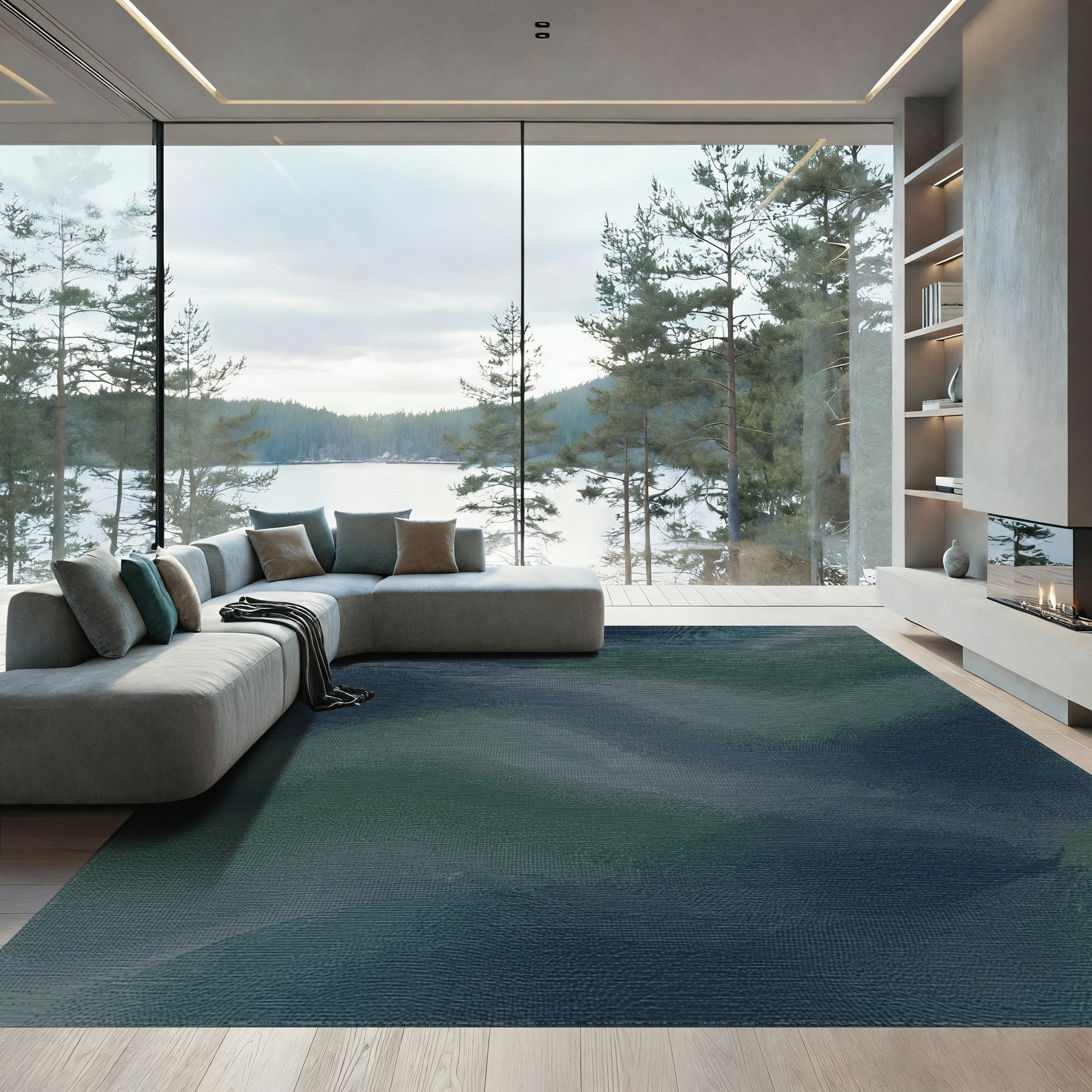 Flatwoven High Traffic Area Rug, Deep Aqua Swirl Abstract Rug, Non Slip, Stain Resistant, Washable Area Rugs for Living Room, Bedroom Overview: