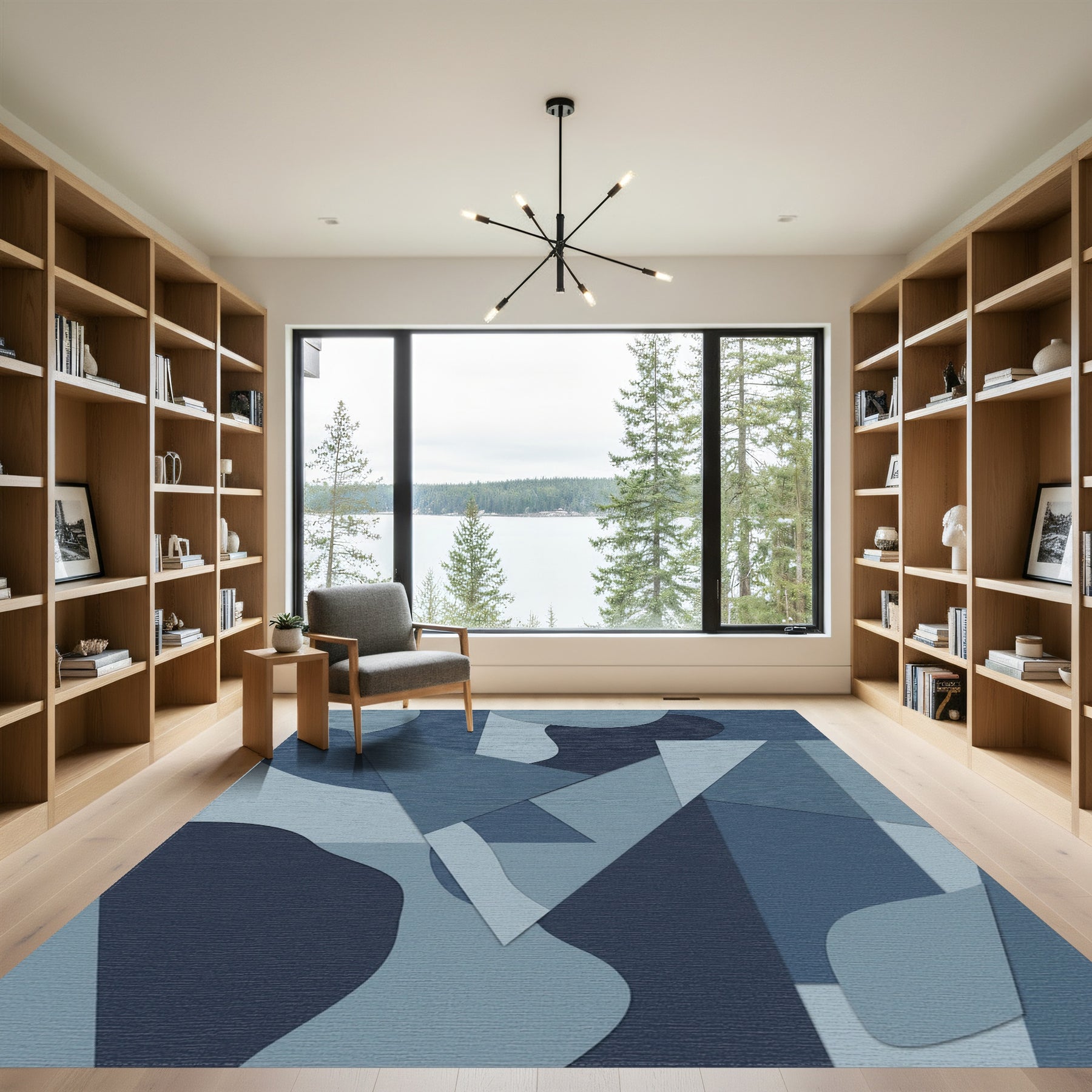 Flatwoven High Traffic Area Rug, Deep Blue Abstract Geometric Collage Rug, Non Slip, Stain Resistant, Washable Area Rugs for Living Room, Bedroom Overview: