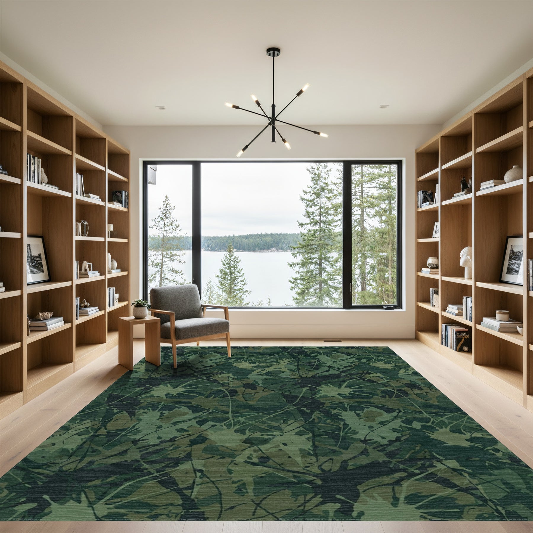 Flatwoven High Traffic Area Rug, Earthy Green Splatter Camouflage Rug, Non Slip, Stain Resistant, Washable Area Rugs for Living Room, Bedroom Overview: