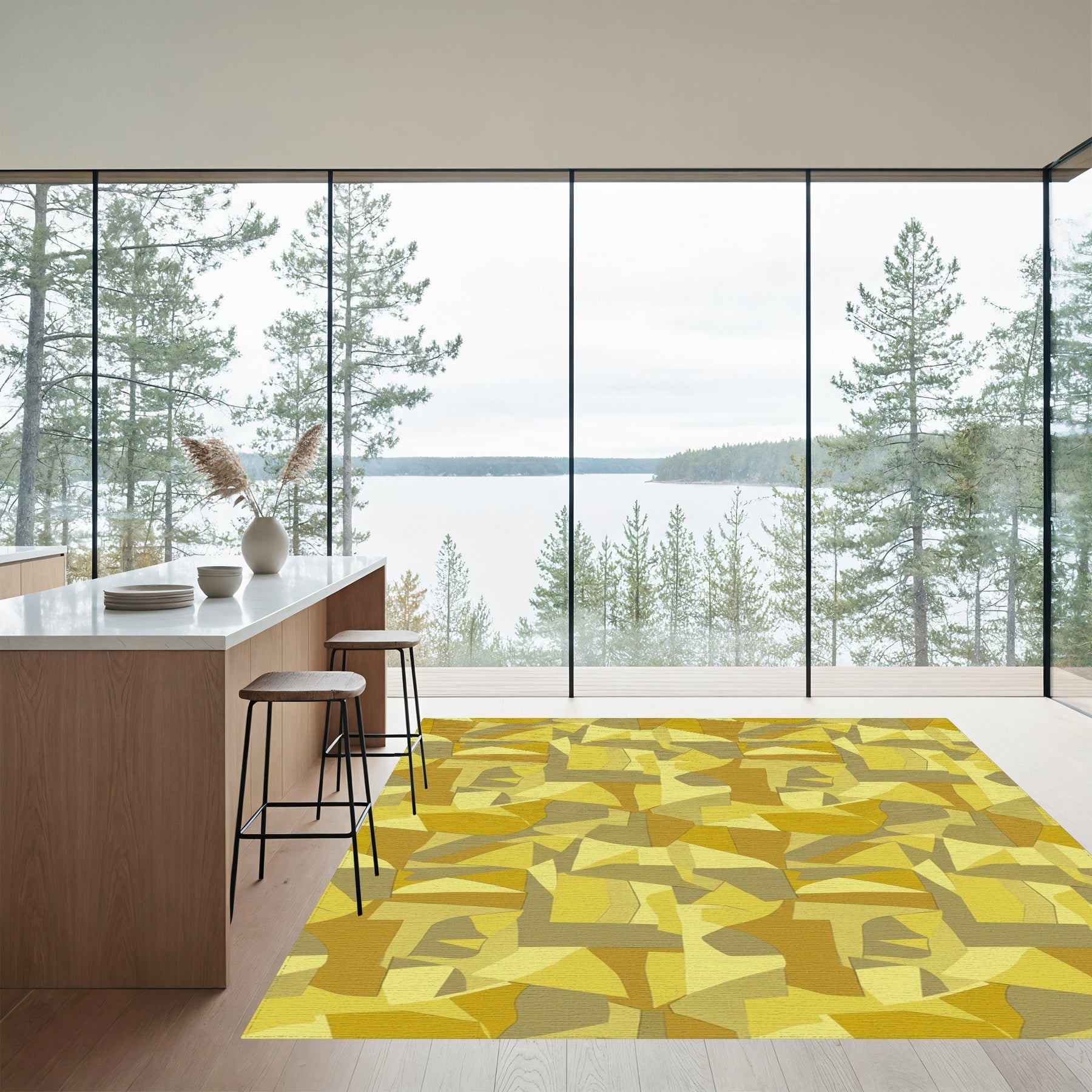 Flatwoven High Traffic Area Rug, Golden Ochre Abstract Geometric Montage Rug, Non Slip, Stain Resistant, Washable Area Rugs for Living Room, Bedroom Overview: