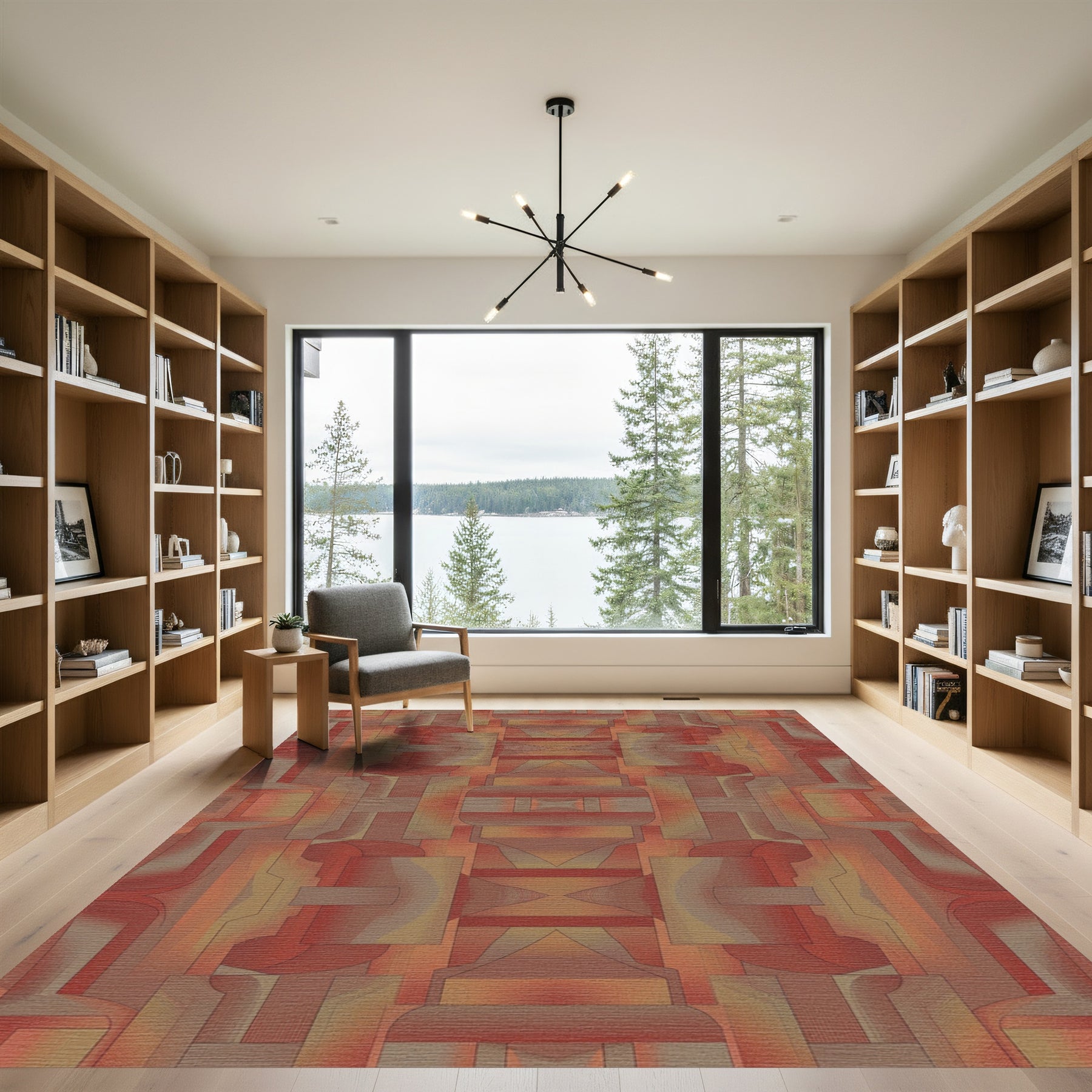 Flatwoven High Traffic Area Rug, Muted Amber Geometric Architectural Rug, Non Slip, Stain Resistant, Washable Area Rugs for Living Room, Bedroom Overview: