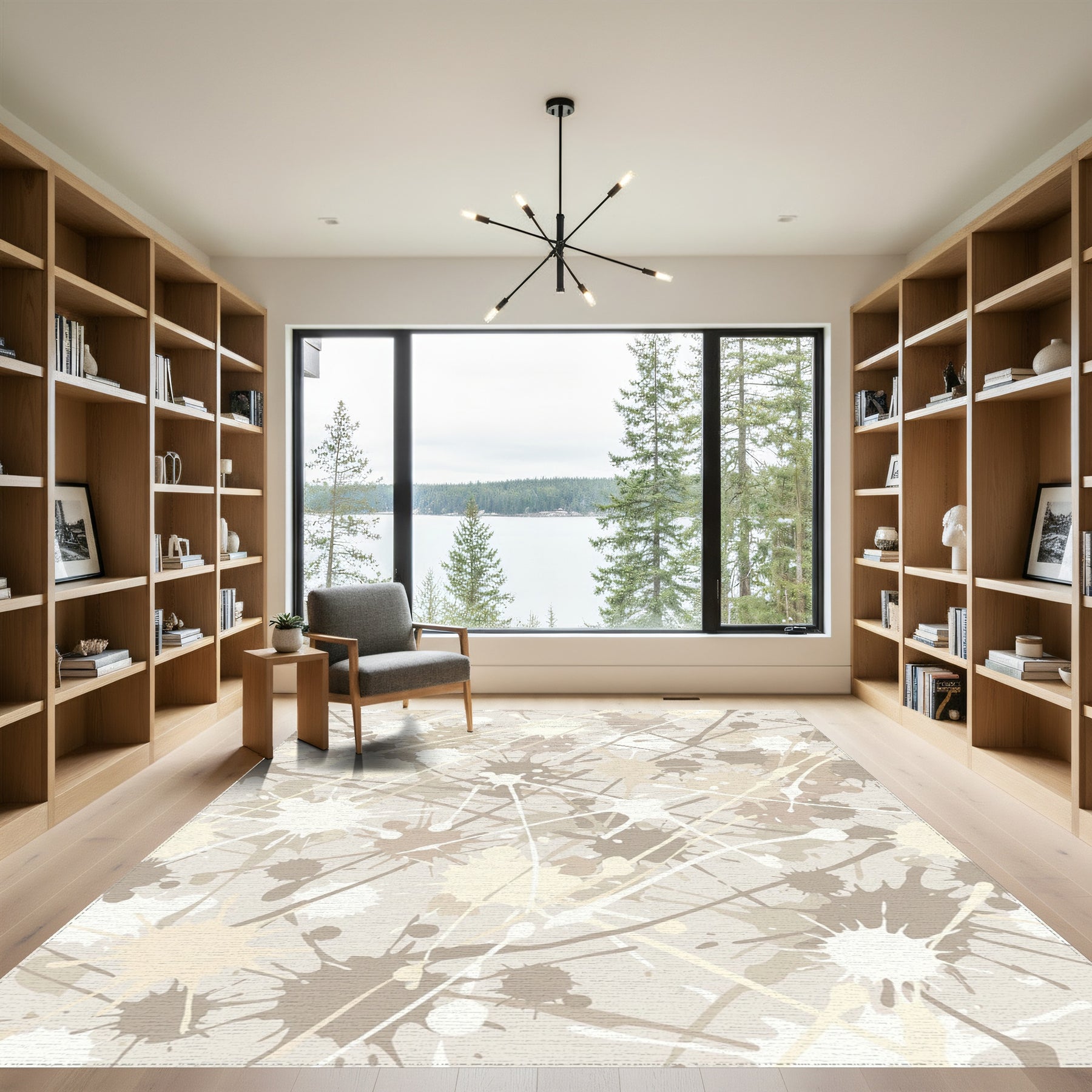 Flatwoven High Traffic Area Rug, Neutral Beige Splatter Abstract Rug, Non Slip, Stain Resistant, Washable Area Rugs for Living Room, Bedroom Overview: