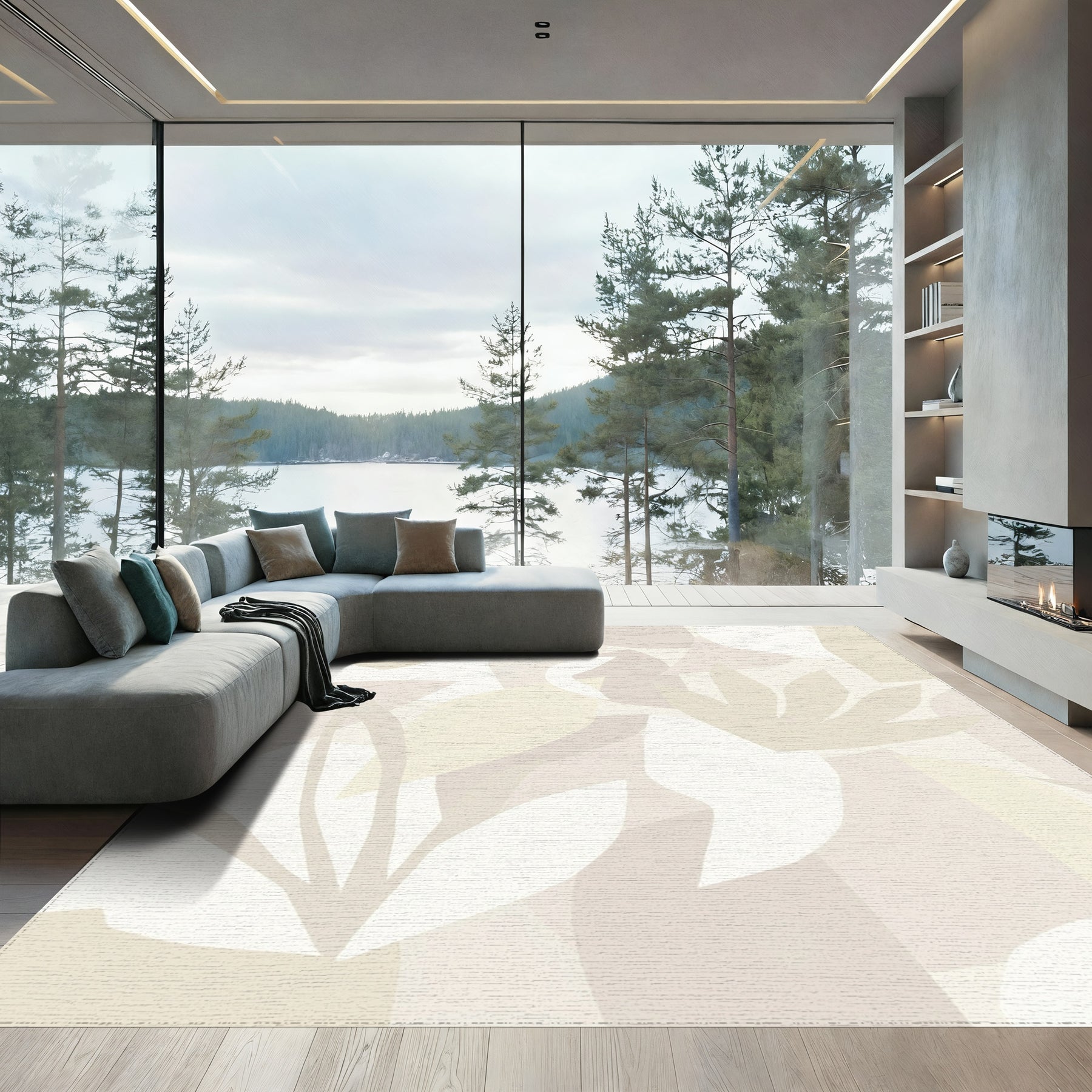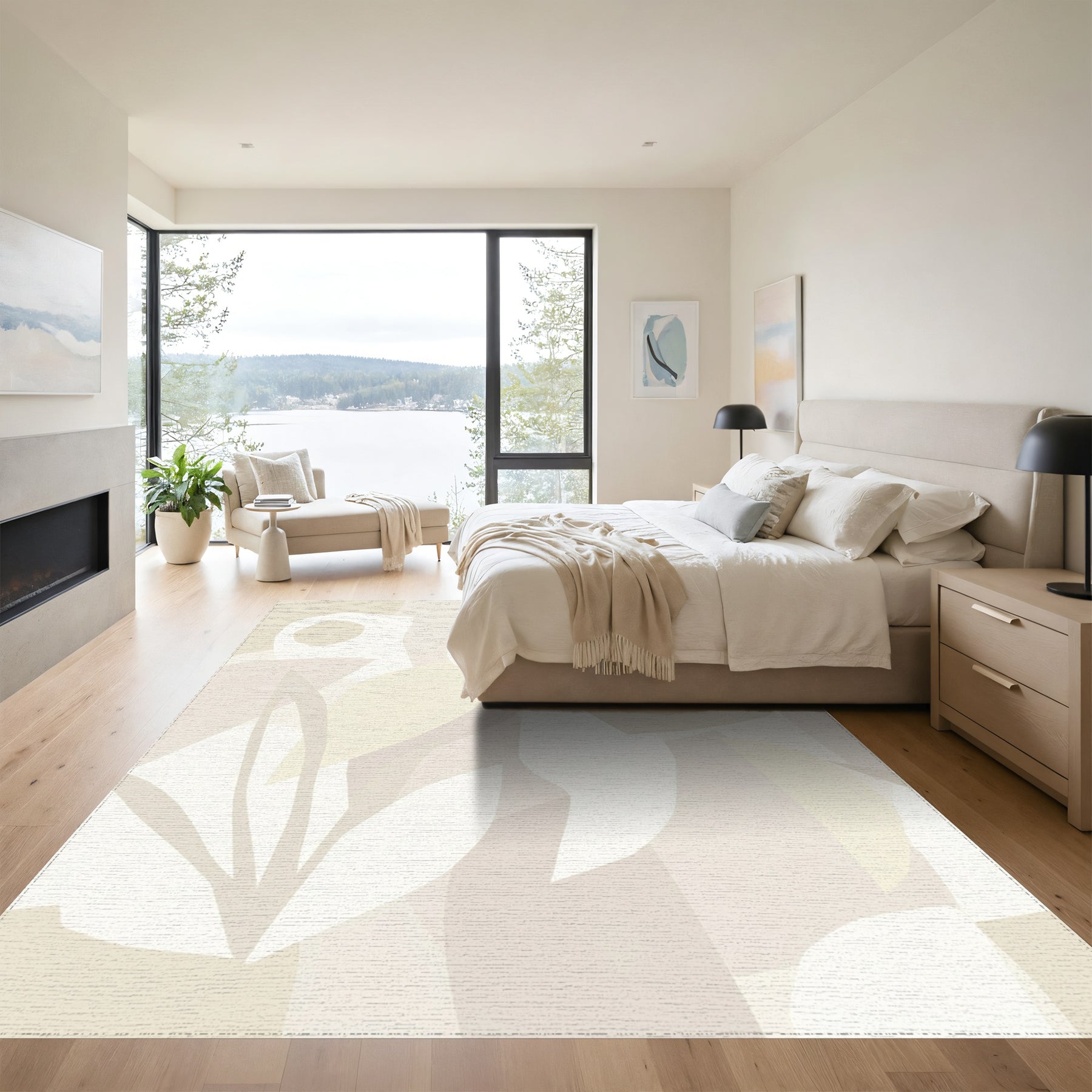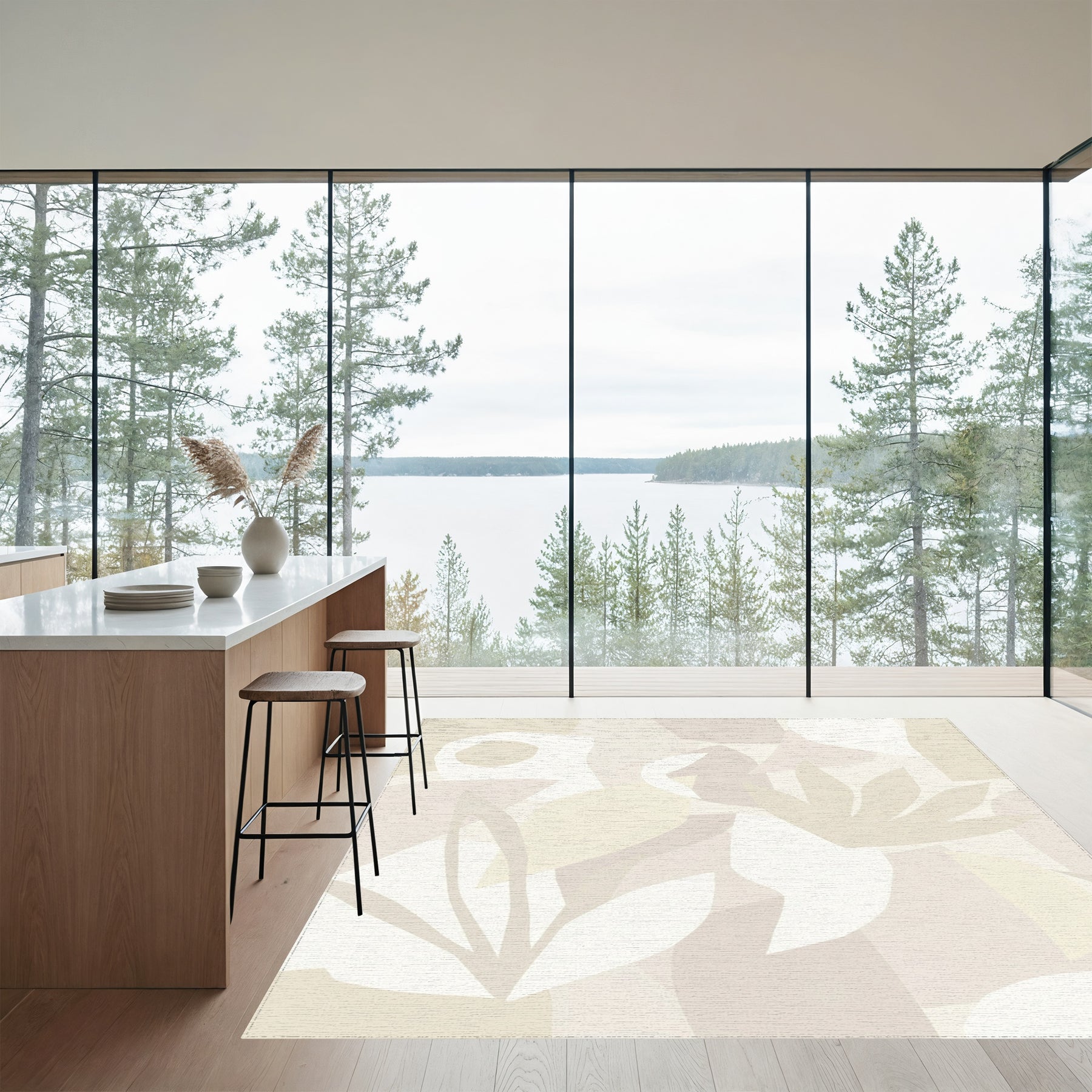 Flatwoven High Traffic Area Rug, Pastel Abstract Botanical Arrangement Rug, Non Slip, Stain Resistant, Washable Area Rugs for Living Room, Bedroom Overview: