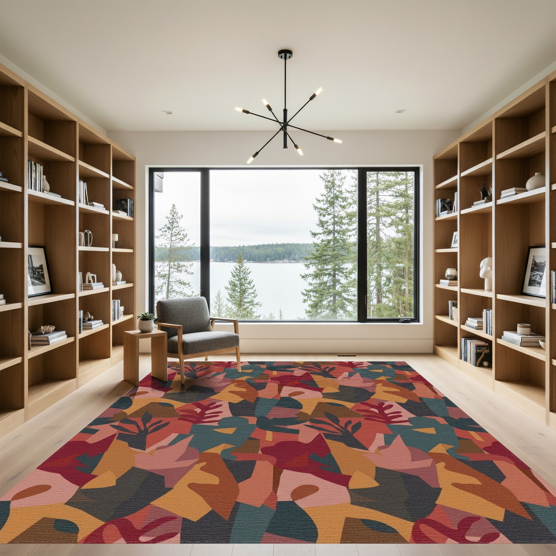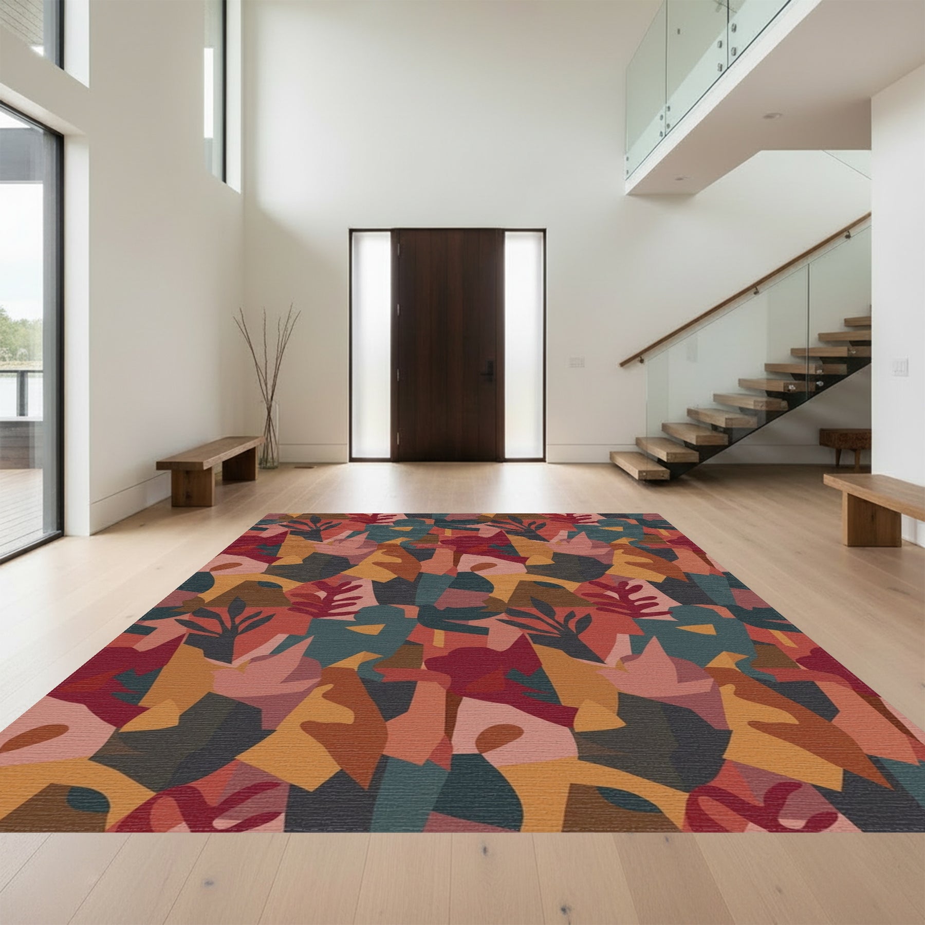 Flatwoven High Traffic Area Rug, Terracotta Abstract Botanical Collage Rug, Non Slip, Stain Resistant, Washable Area Rugs for Living Room, Bedroom Overview: