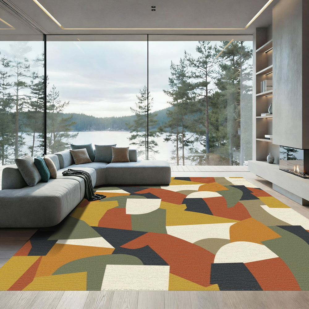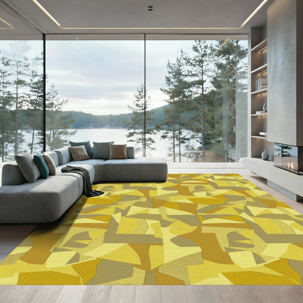 Golden Ochre Abstract Geometric Montage Rug