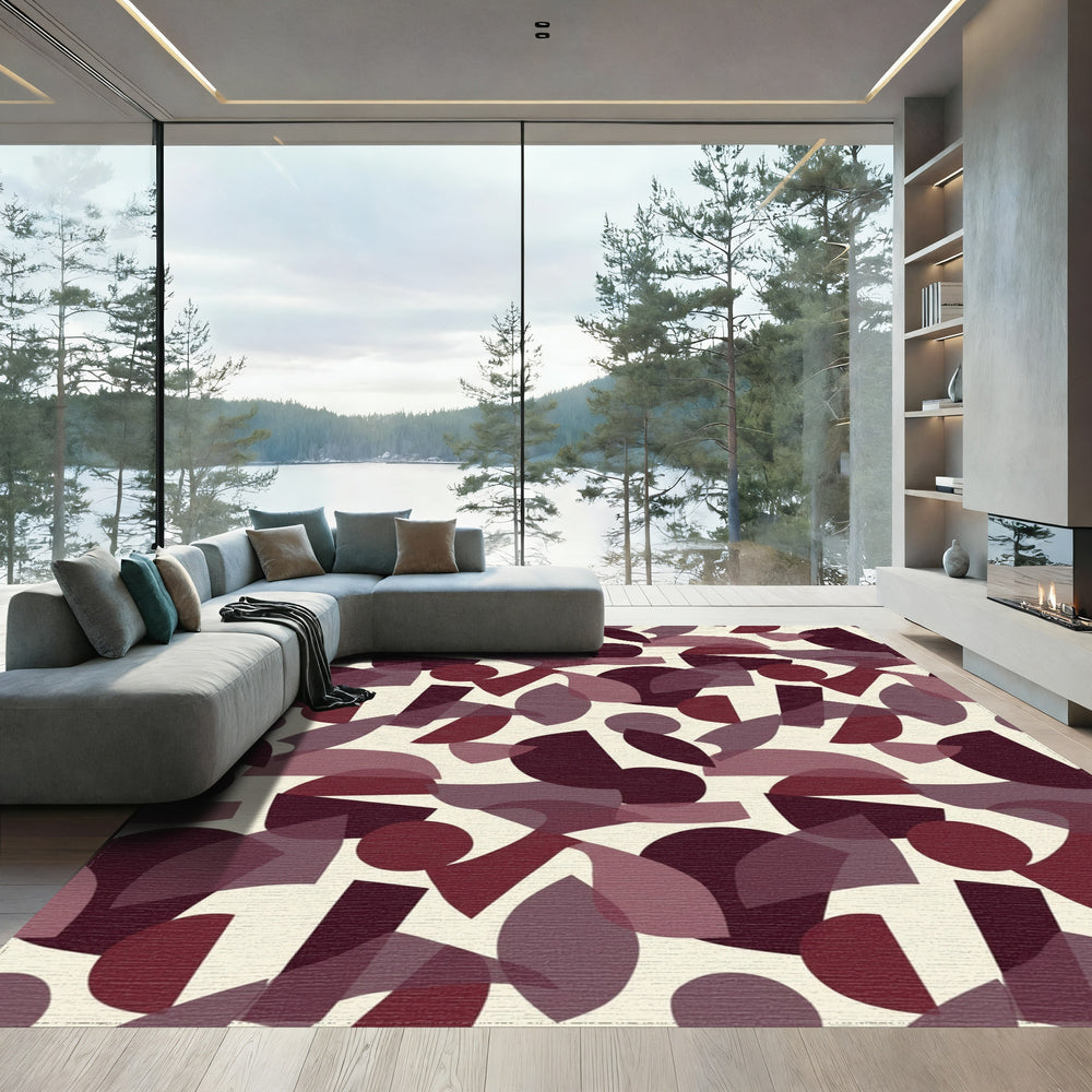 Crimson Plum Abstract Geometric Overlap Rug