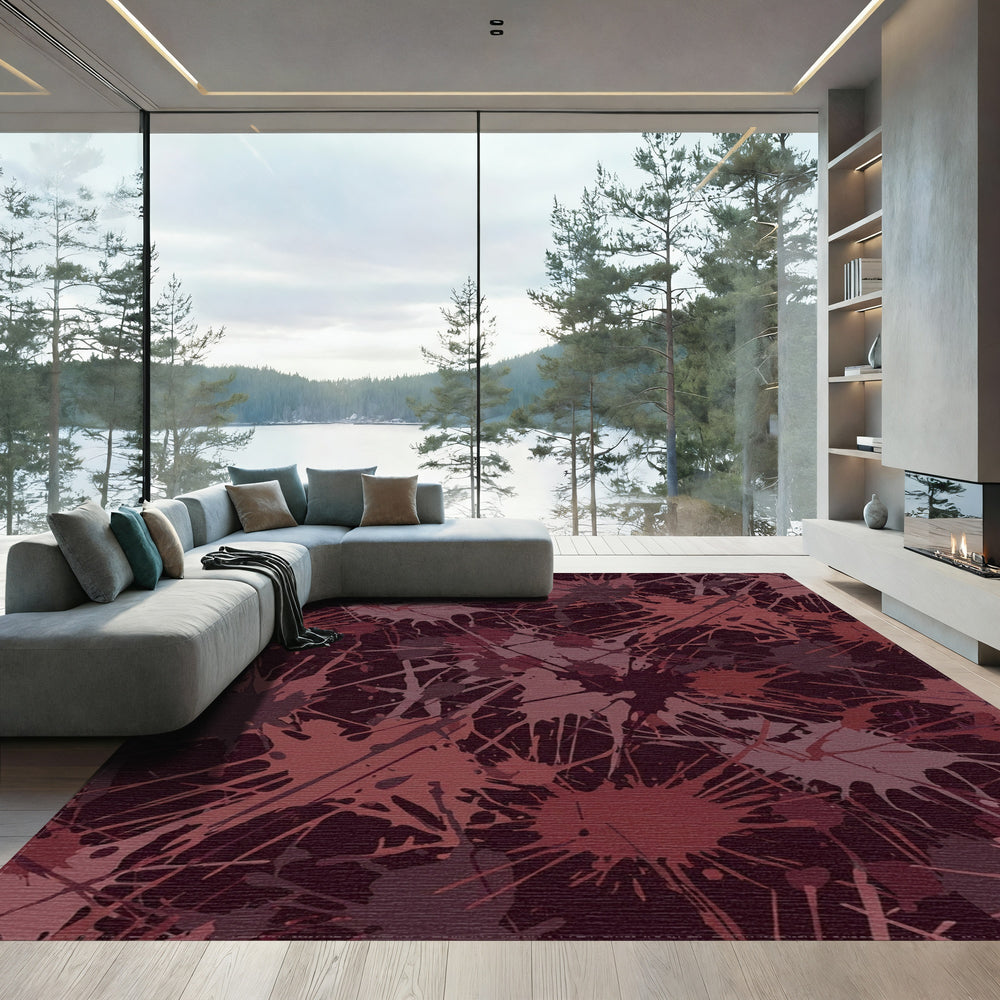 Burgundy Splatter Abstract Paint Rug