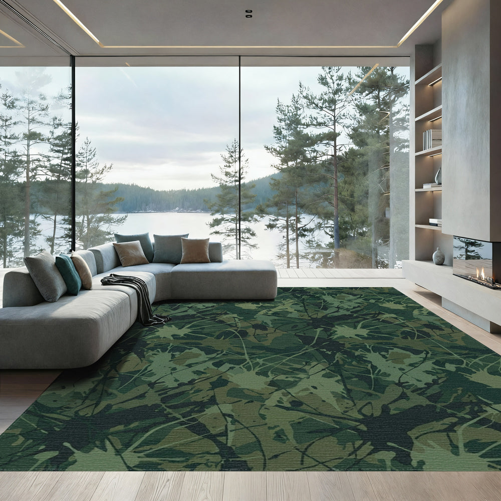 Earthy Green Splatter Camouflage Rug
