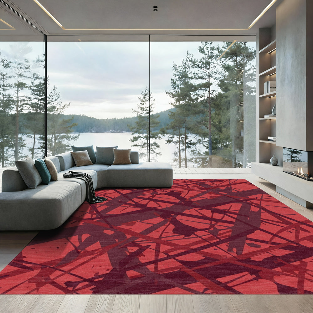 Crimson Scribble Abstract Splash Rug