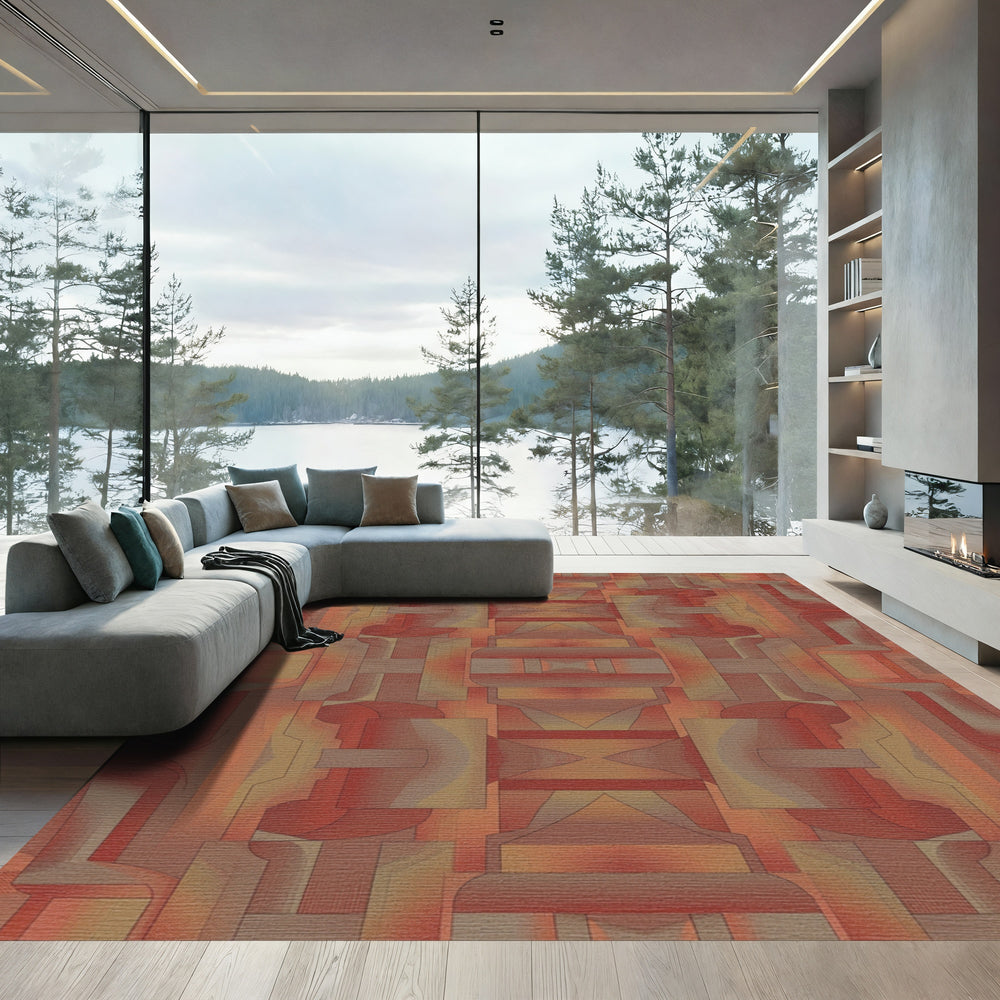 Terracotta Abstract Geometric Block Rug