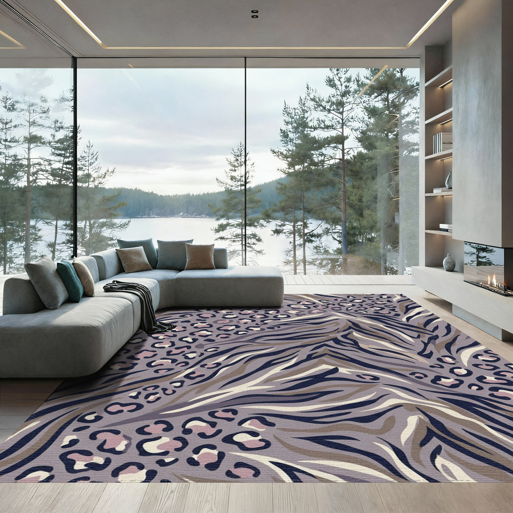 Dark Teal Abstract Geometric Reptile Skin Rug