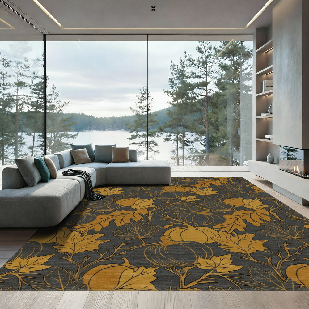 Golden Pumpkin Leaf Autumn Overlay Rug