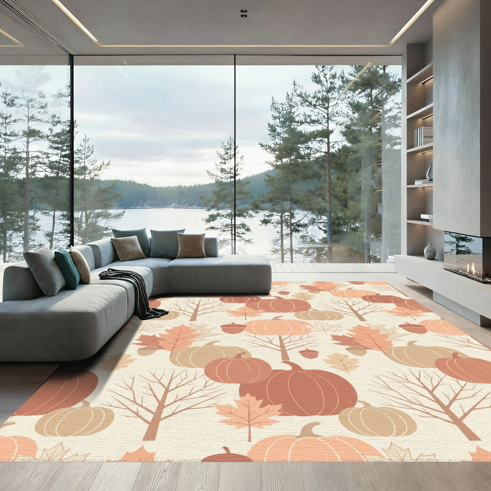Autumn Harvest Pumpkin Leaf Arrangement Rug