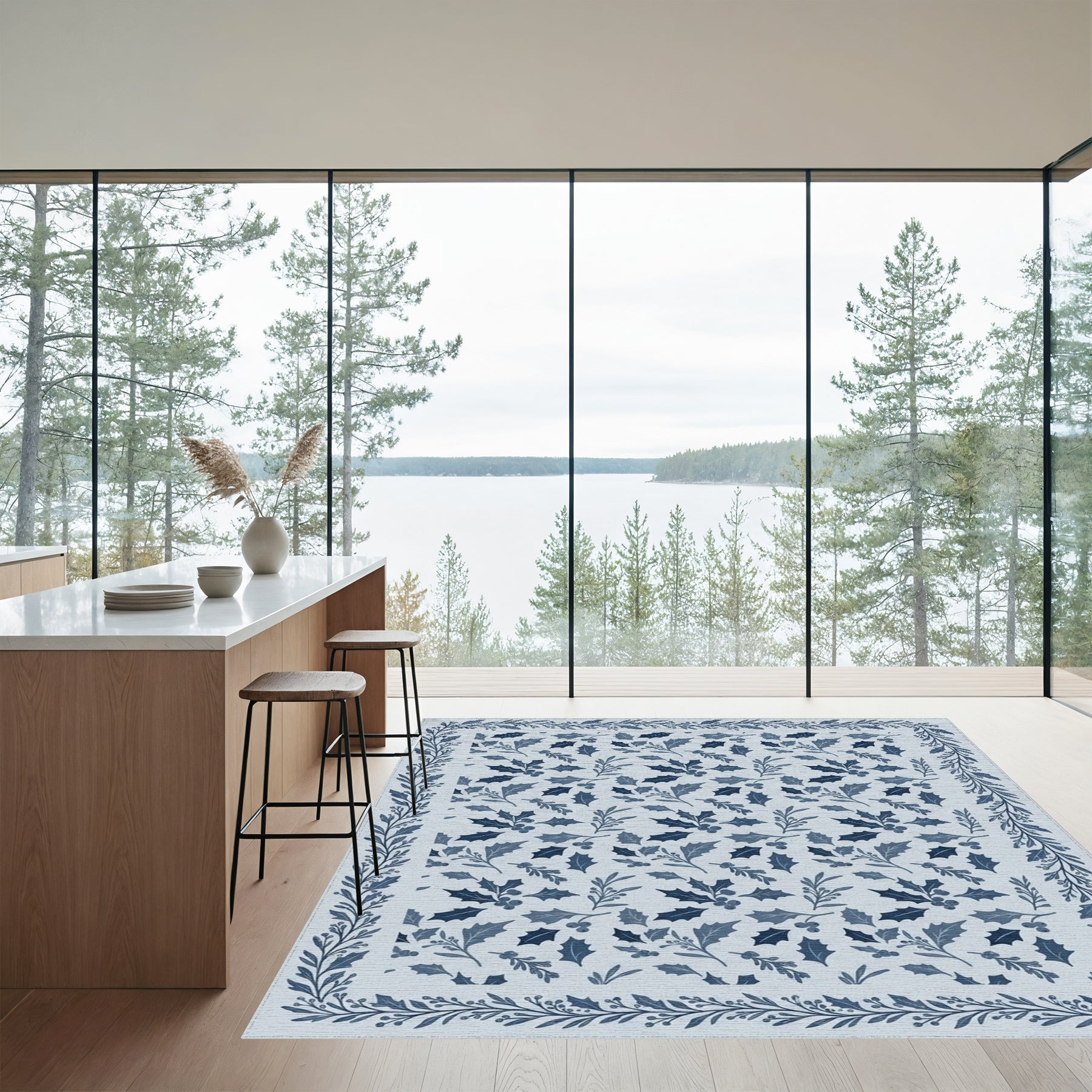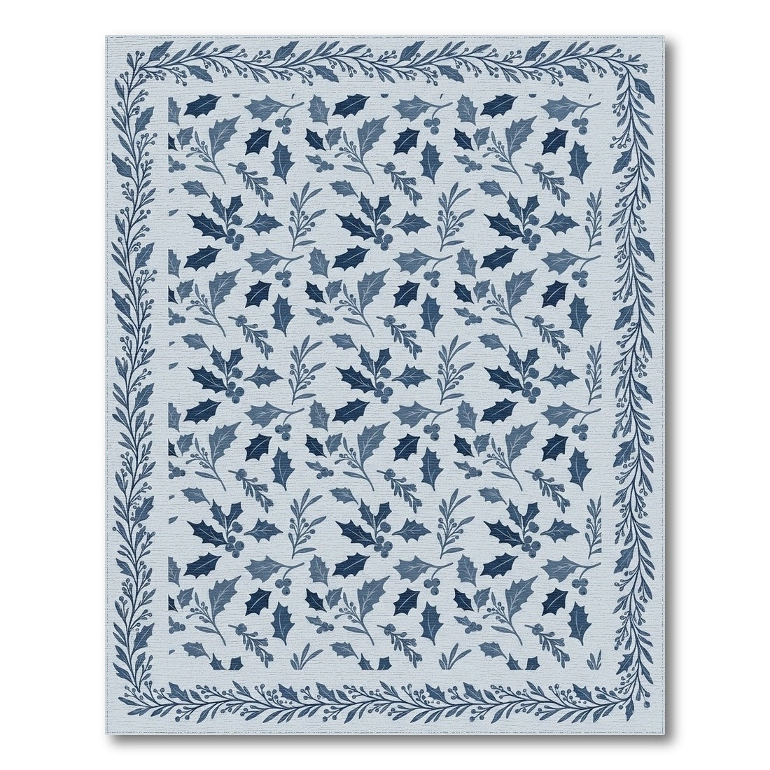 Flatwoven High Traffic Area Rug, Classic Blue Holly Leaf Garland Rug, Non Slip, Stain Resistant, Washable Area Rugs for Living Room, Bedroom Overview: