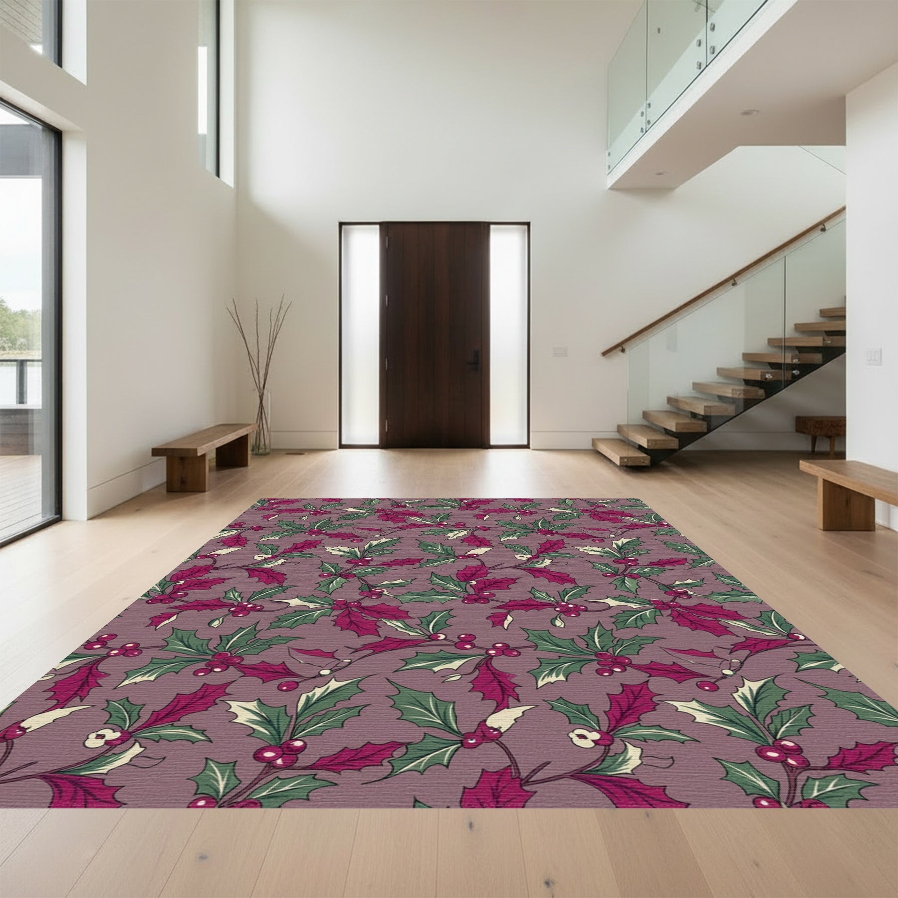 Flatwoven High Traffic Area Rug, Crimson Holly Berry Garland Repeating Rug, Non Slip, Stain Resistant, Washable Area Rugs for Living Room, Bedroom Overview: