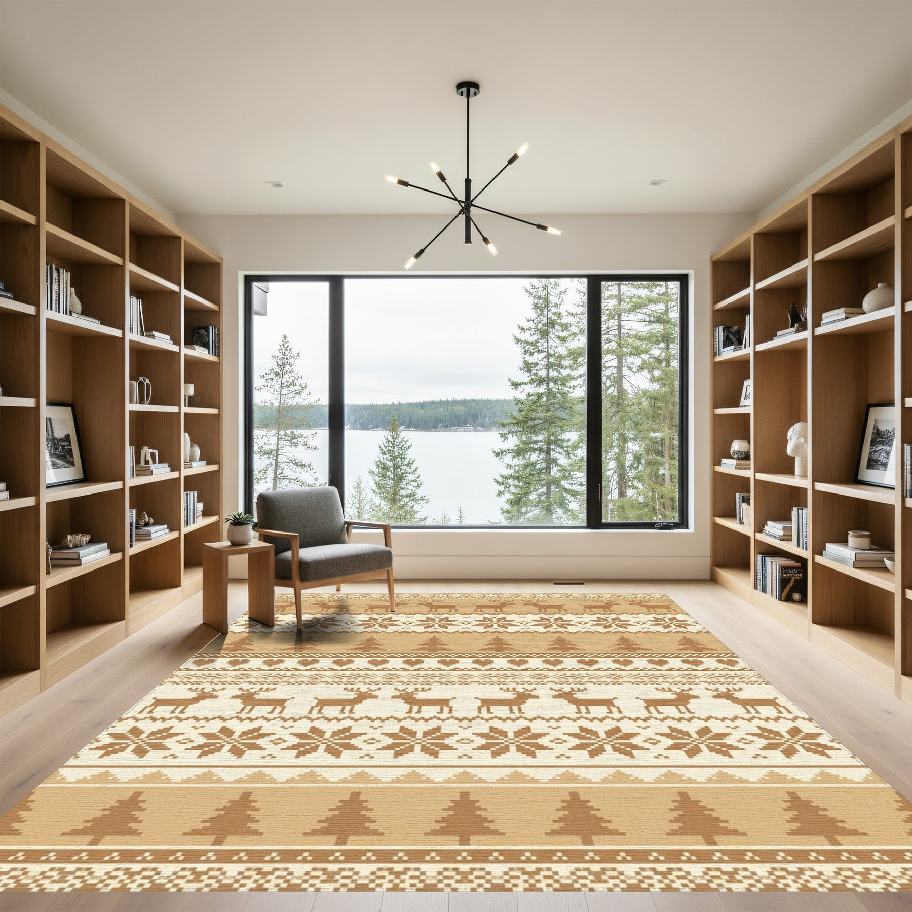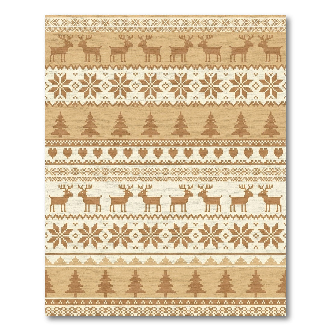 Flatwoven High Traffic Area Rug, Golden Reindeer Snowflakes Forest Hearts Rug, Non Slip, Stain Resistant, Washable Area Rugs for Living Room, Bedroom Overview: