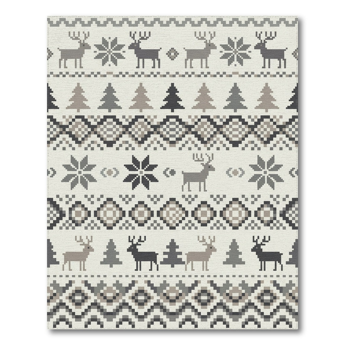 Flatwoven High Traffic Area Rug, Neutral Reindeer Forest Folk Art Rug, Non Slip, Stain Resistant, Washable Area Rugs for Living Room, Bedroom Overview:
