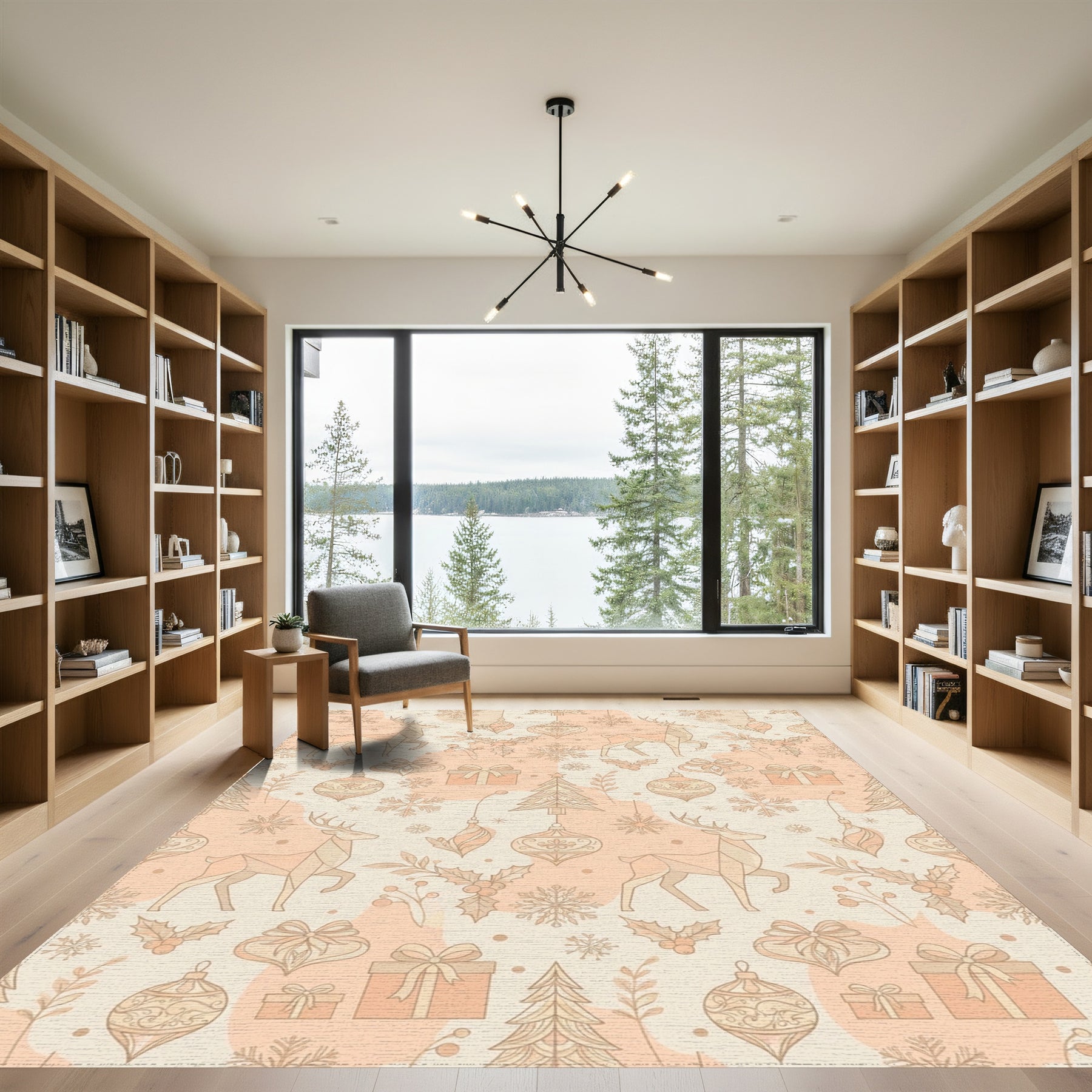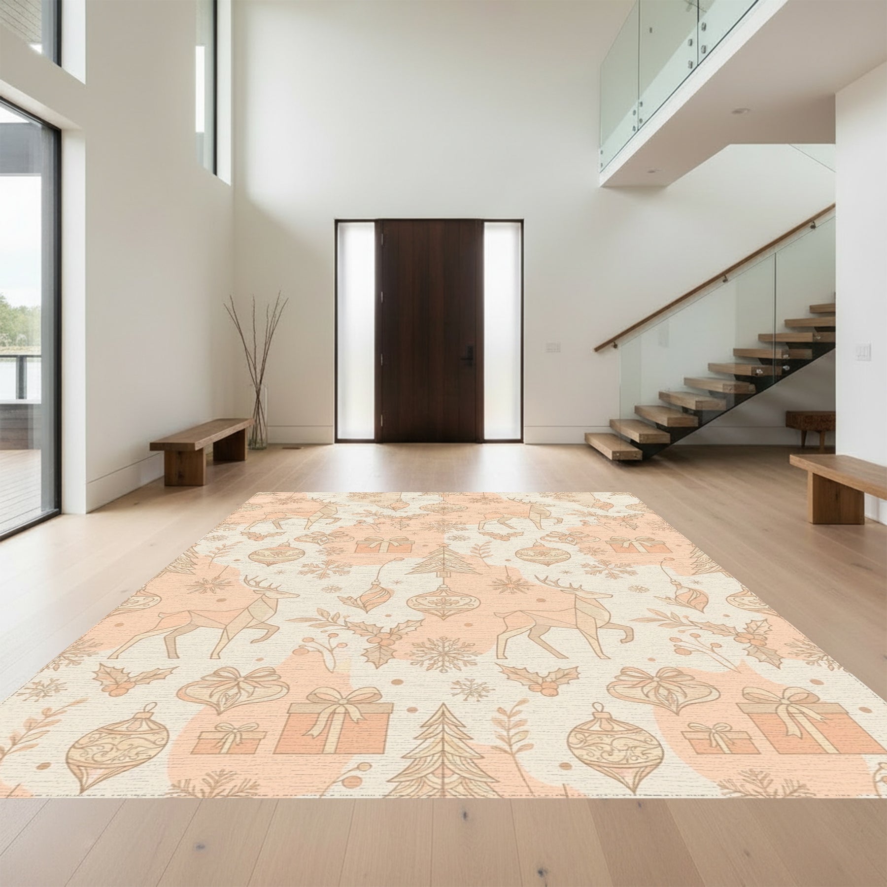 Flatwoven High Traffic Area Rug, Winter Deer Holly Gifts Ornaments Snowflakes Rug, Non Slip, Stain Resistant, Washable Area Rugs for Living Room, Bedroom Overview: