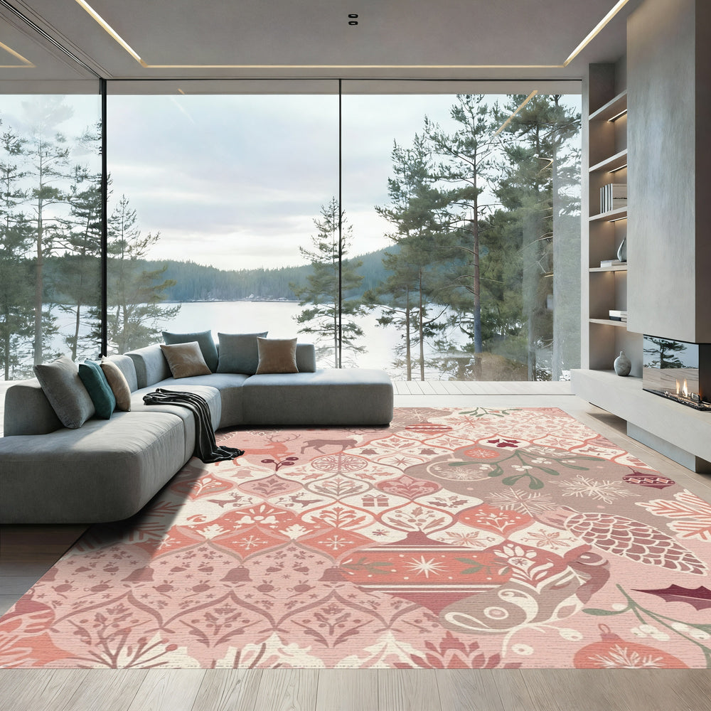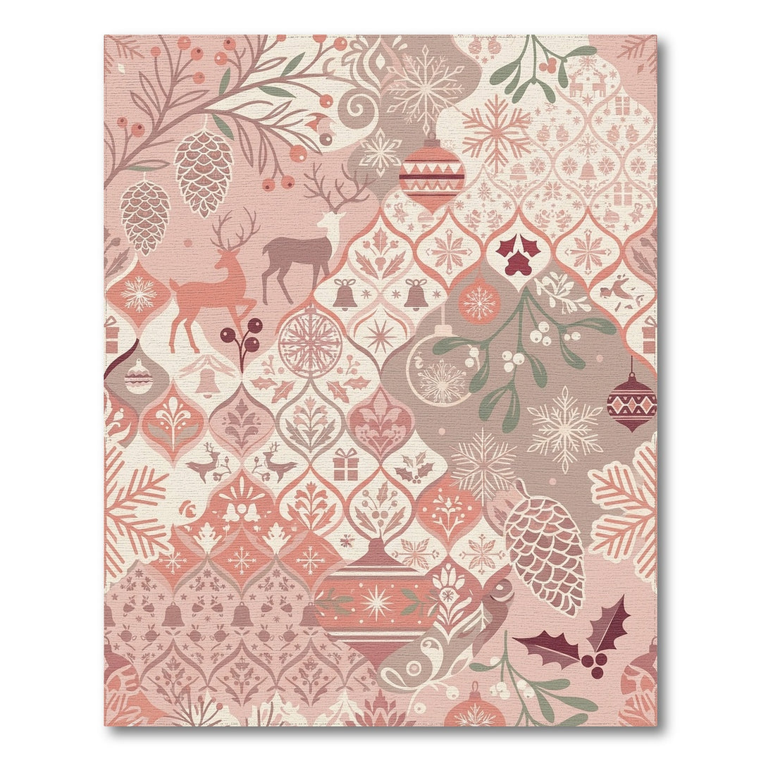 Pink Vintage Christmas Ornament Reindeer Rug