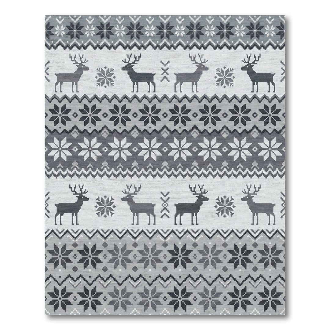Gray Deer Snowflake Geometric Knit Rug