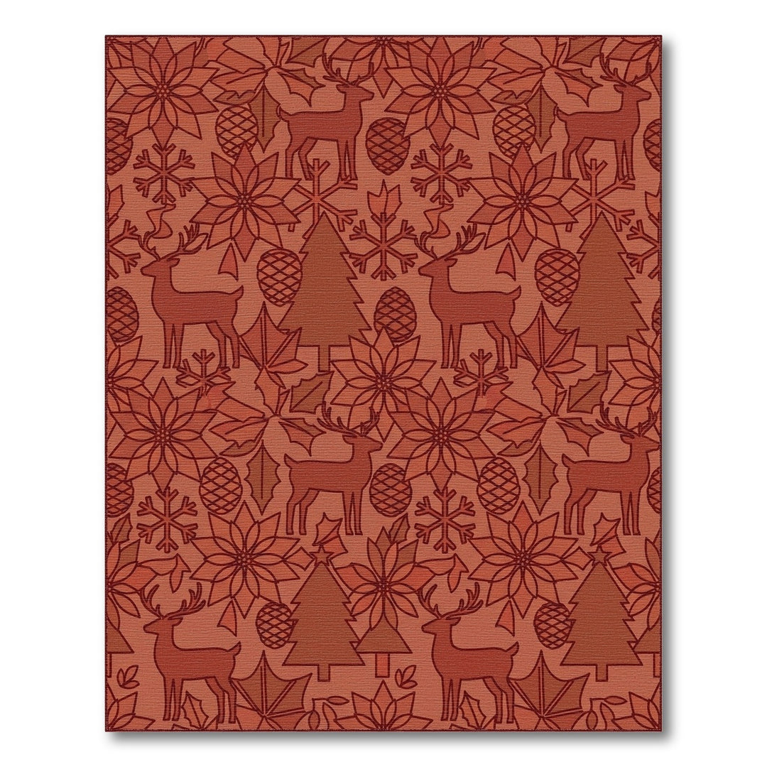 Deep Berry Reindeer Snowflake Holiday Accents Rug