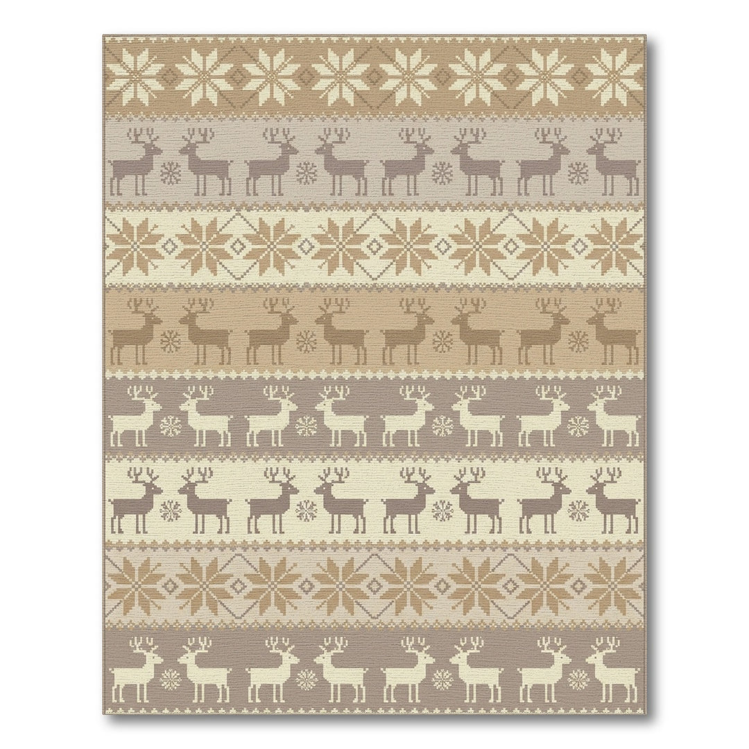 Neutral Taupe Reindeer Snowflake Stripe Rug
