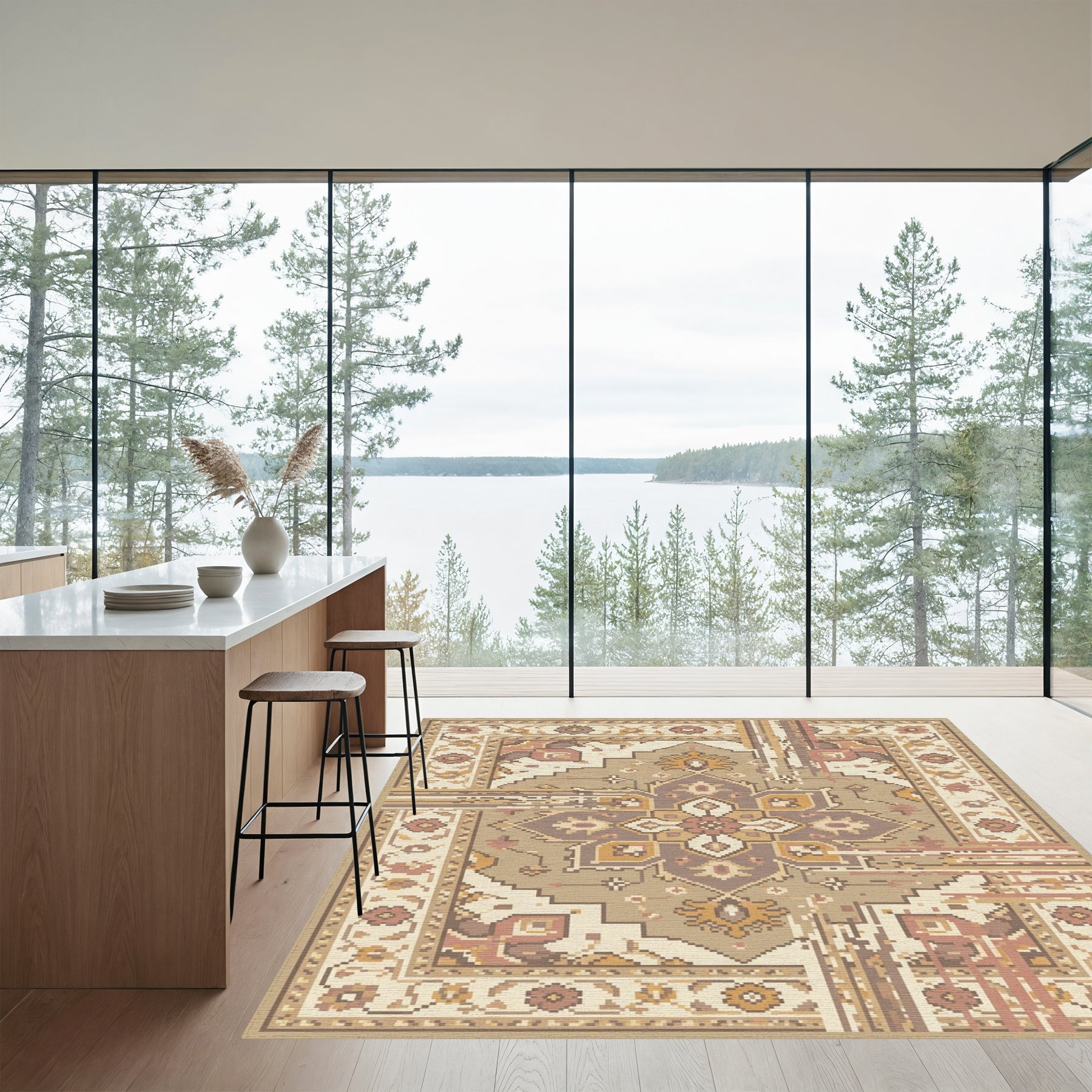 Flatwoven High Traffic Area Rug, Earthy Terracotta Pixelated Floral Medallion Rug, Non Slip, Stain Resistant, Washable Area Rugs for Living Room, Bedroom Overview: