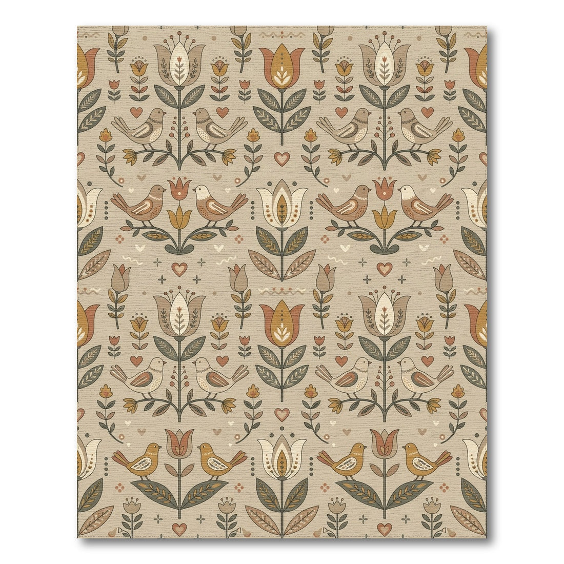 Flatwoven High Traffic Area Rug, Earthy Tone Birds and Tulips Rug, Non Slip, Stain Resistant, Washable Area Rugs for Living Room, Bedroom Overview: