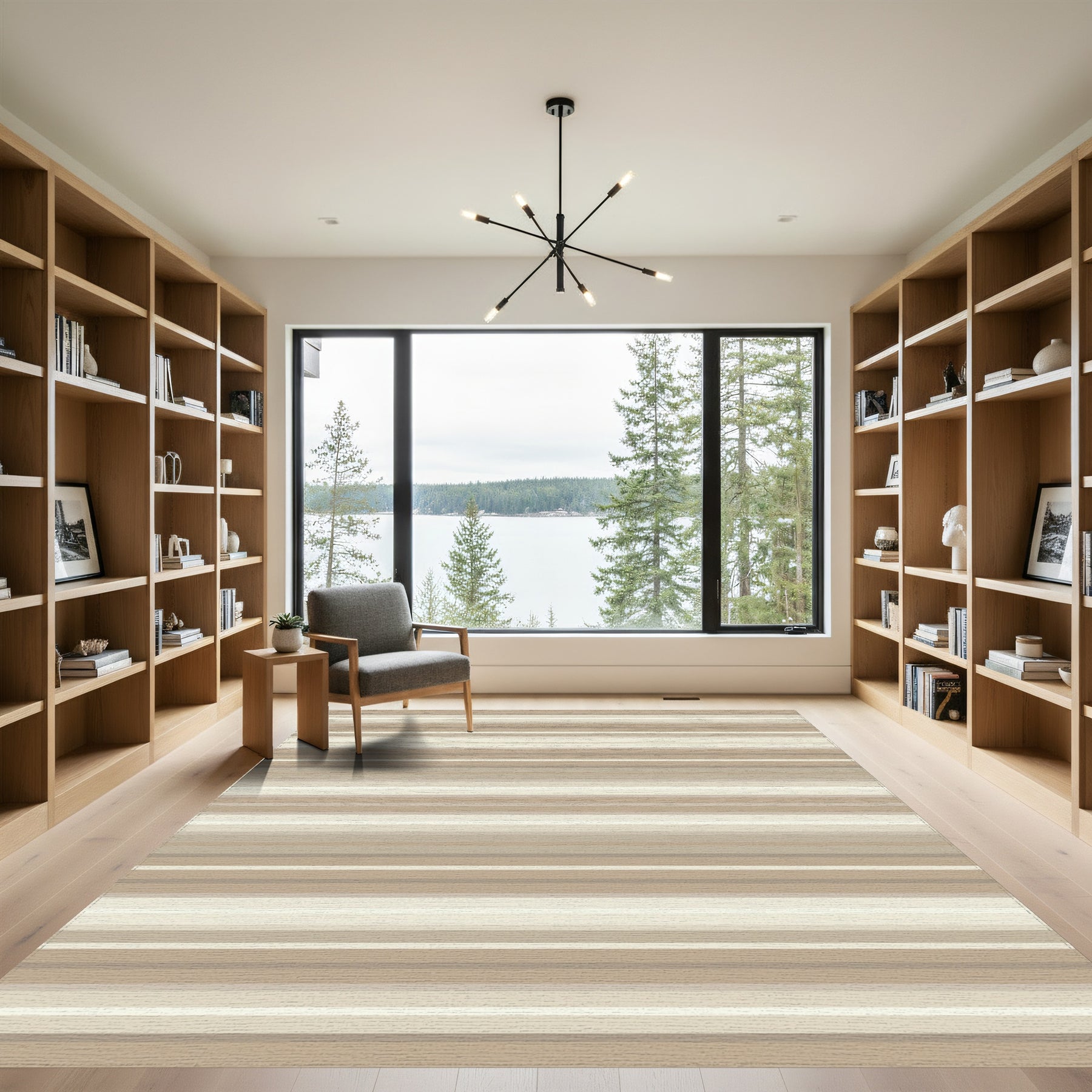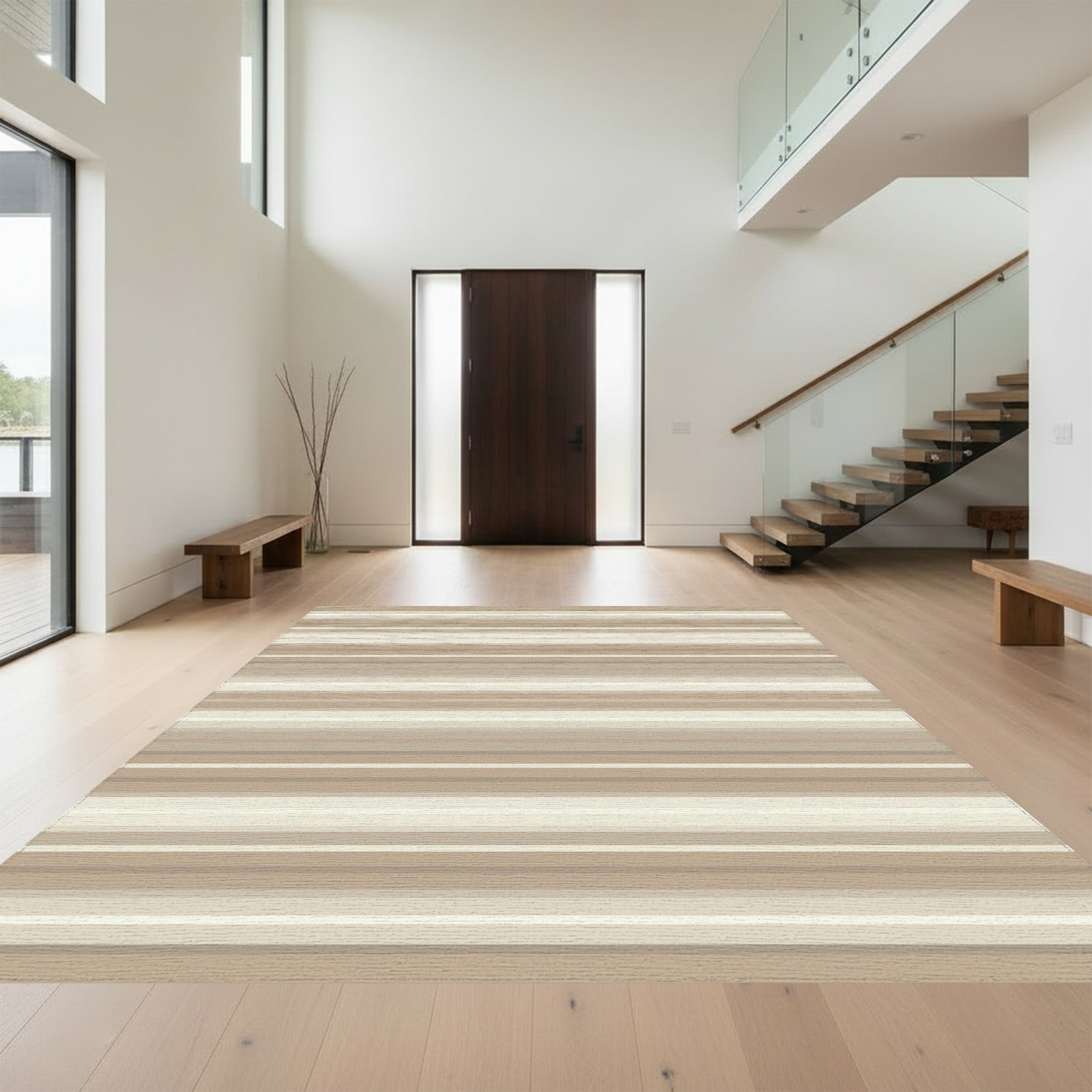 Flatwoven High Traffic Area Rug, Earthy Tones Horizontal Stripe Rug, Non Slip, Stain Resistant, Washable Area Rugs for Living Room, Bedroom Overview:
