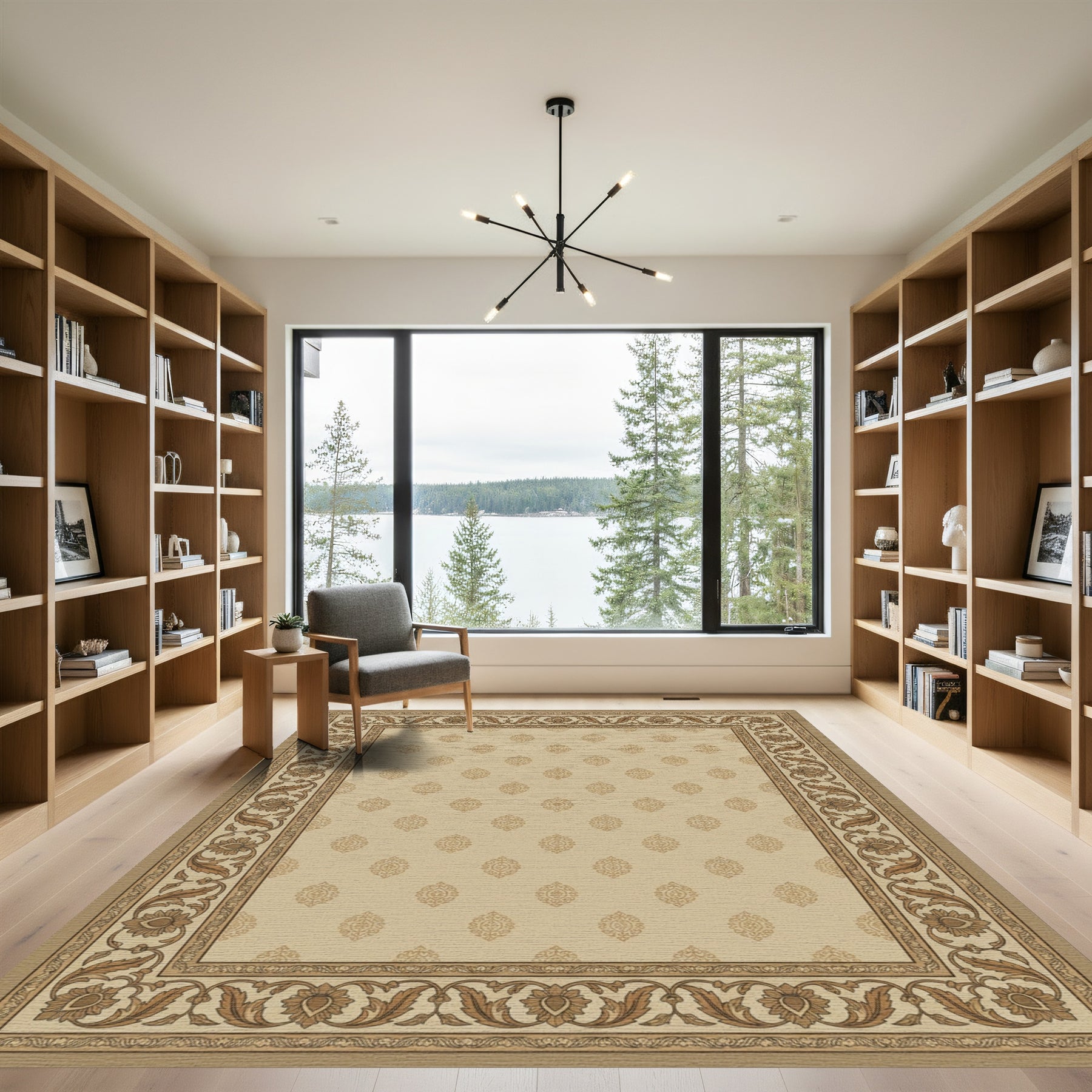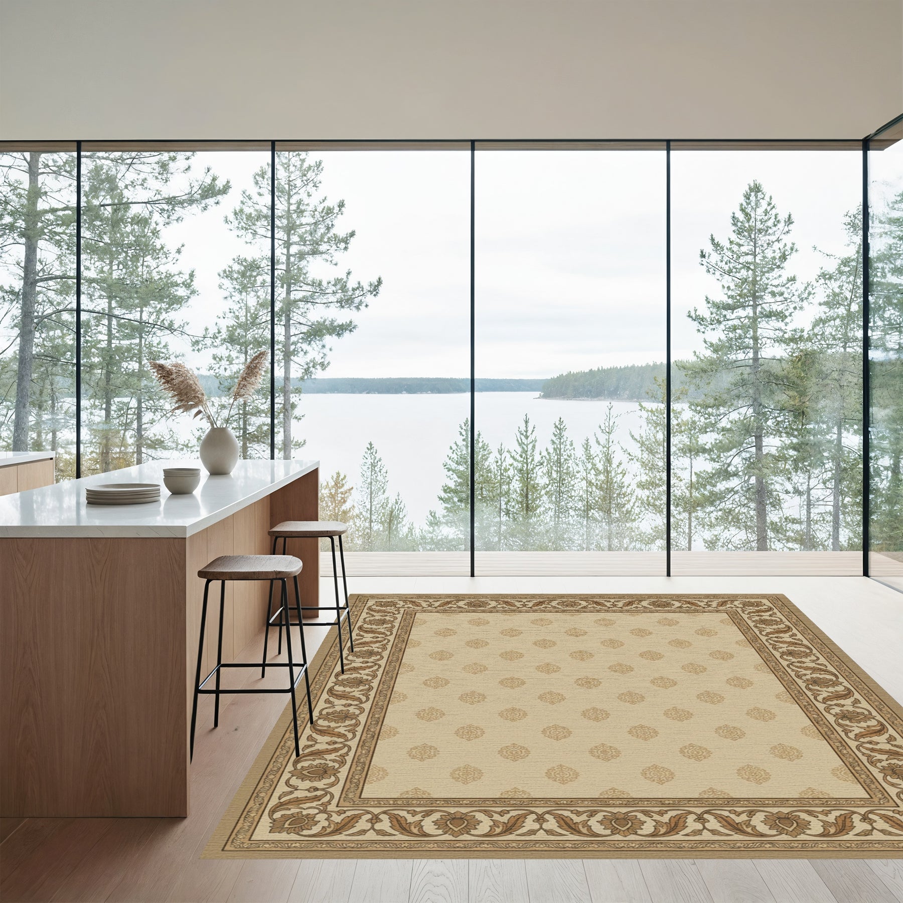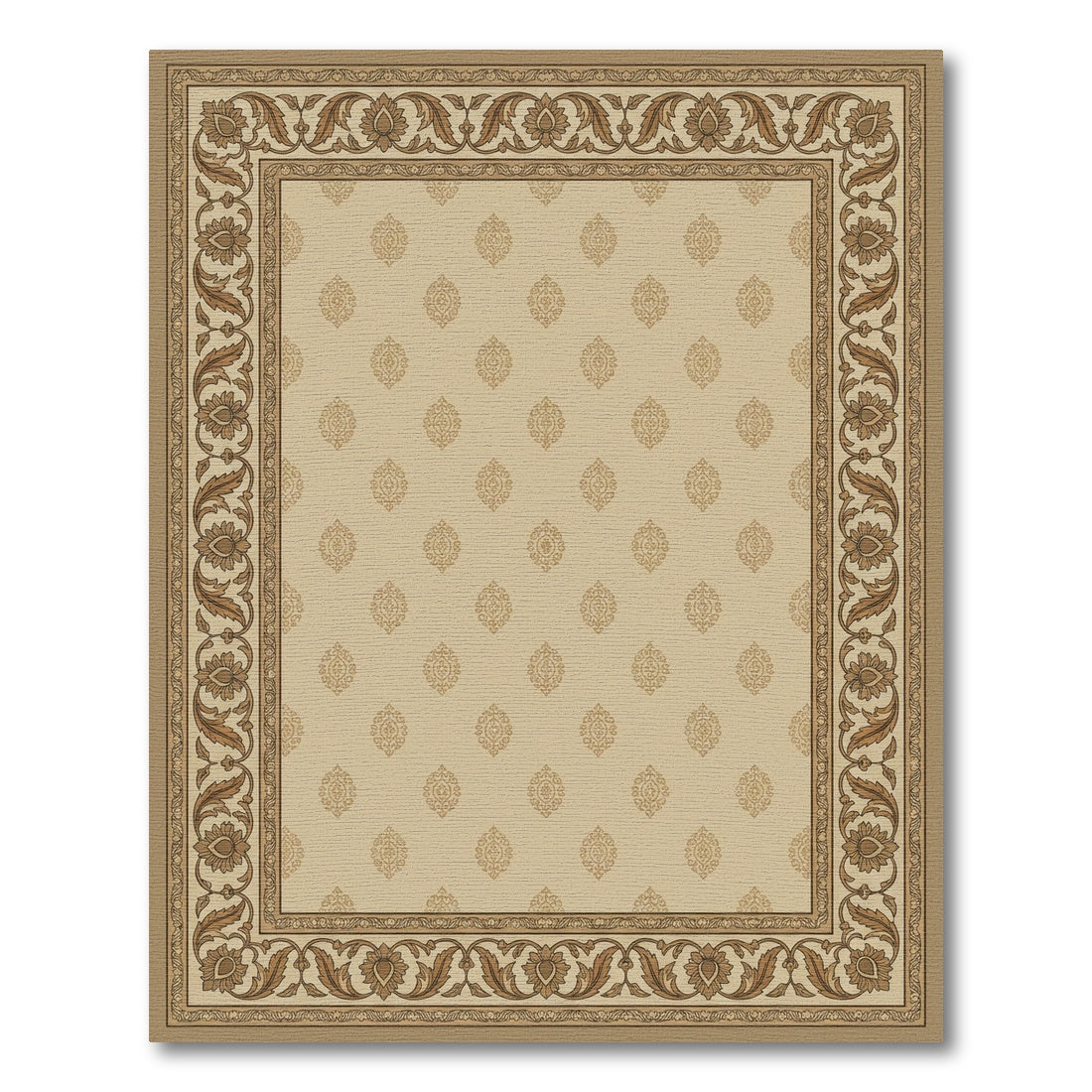 Flatwoven High Traffic Area Rug, Elegant Beige Floral Border Medallion Rug, Non Slip, Stain Resistant, Washable Area Rugs for Living Room, Bedroom Overview: