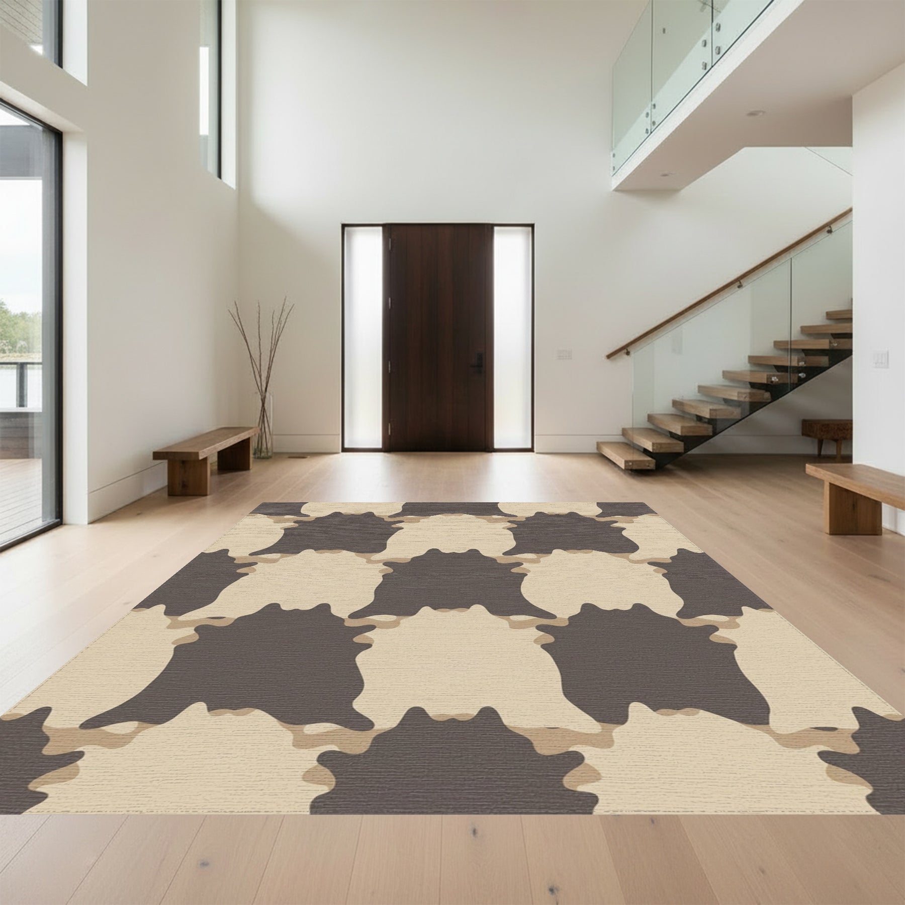 Flatwoven High Traffic Area Rug, Neutral Earthy Brown Camouflage Cowhide Rug, Non Slip, Stain Resistant, Washable Area Rugs for Living Room, Bedroom Overview: