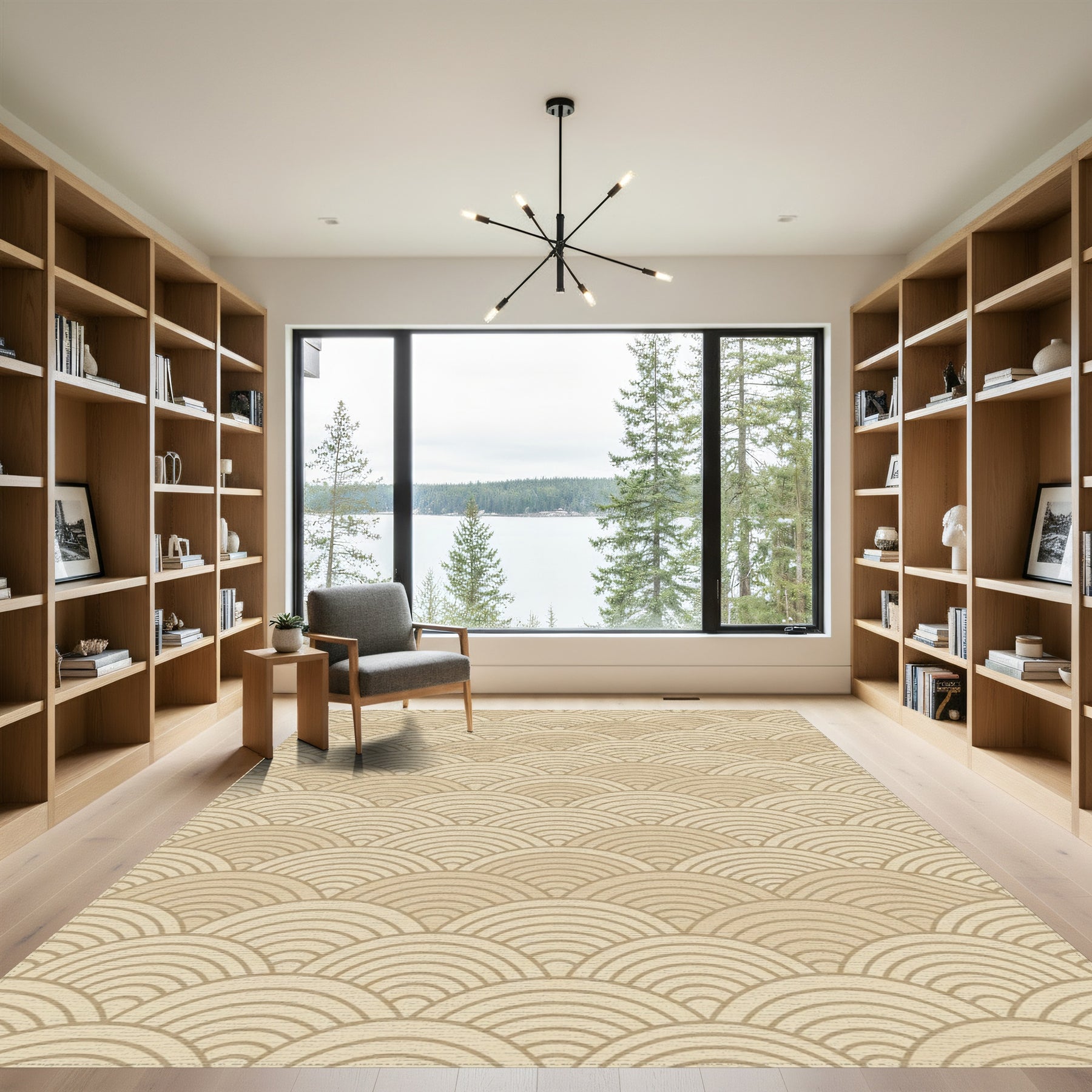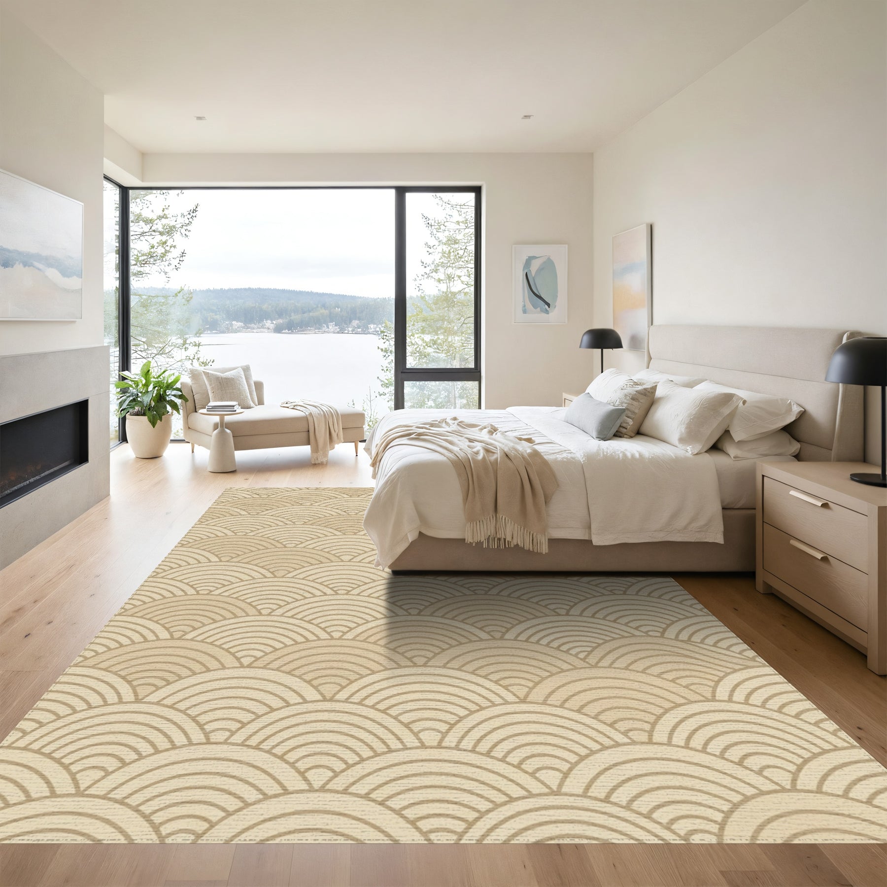 Flatwoven High Traffic Area Rug, Neutral Tan Scallop Wave Texture Rug, Non Slip, Stain Resistant, Washable Area Rugs for Living Room, Bedroom Overview: