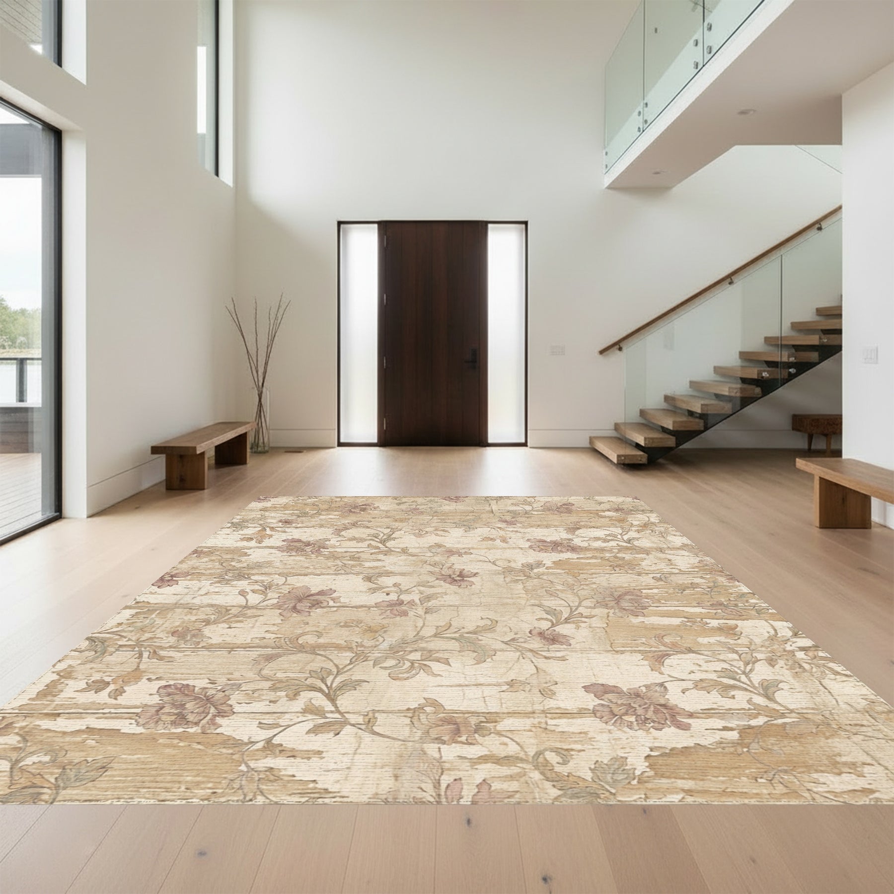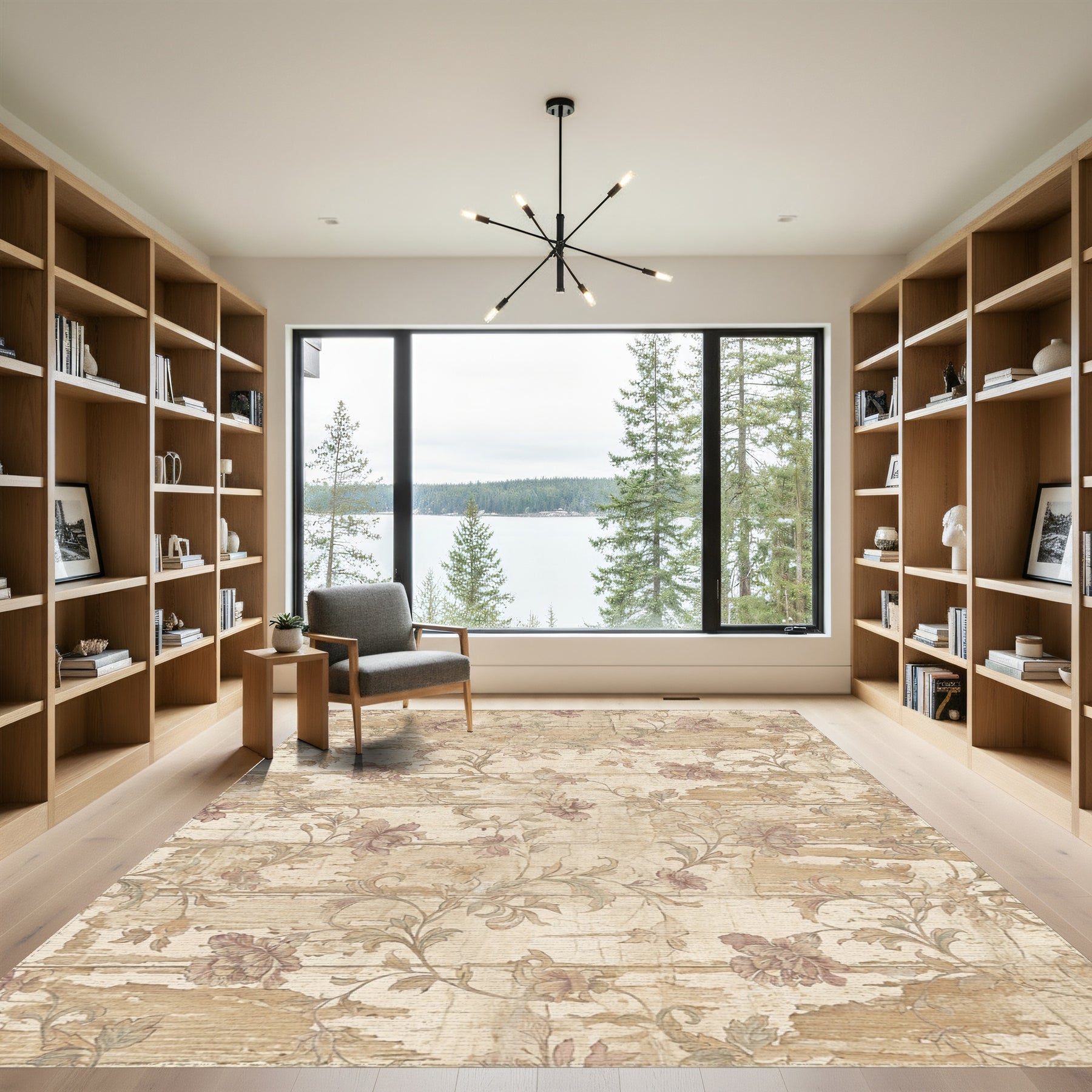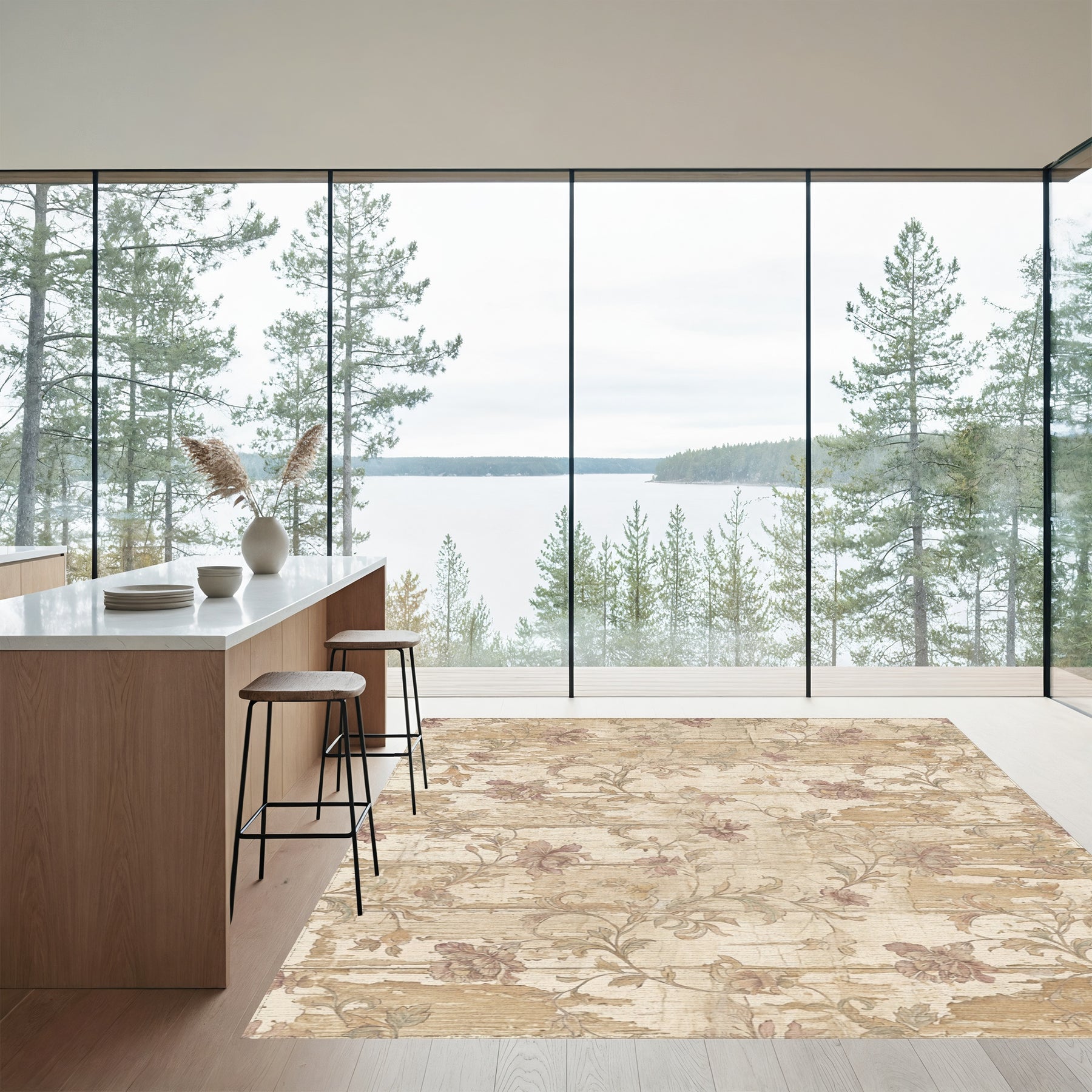 Flatwoven High Traffic Area Rug, Rustic Floral Vine Distressed Wood Rug, Non Slip, Stain Resistant, Washable Area Rugs for Living Room, Bedroom Overview: