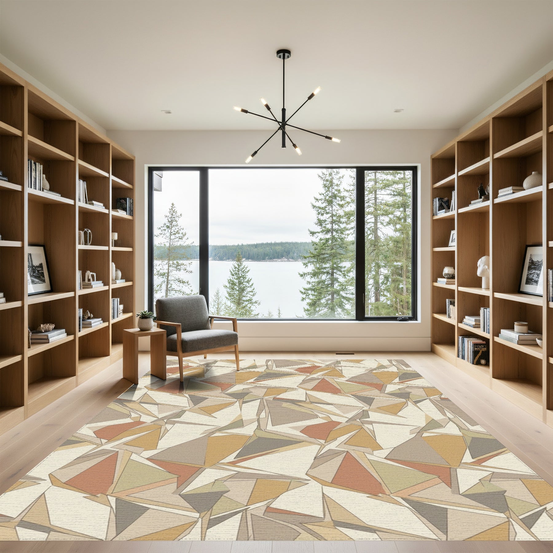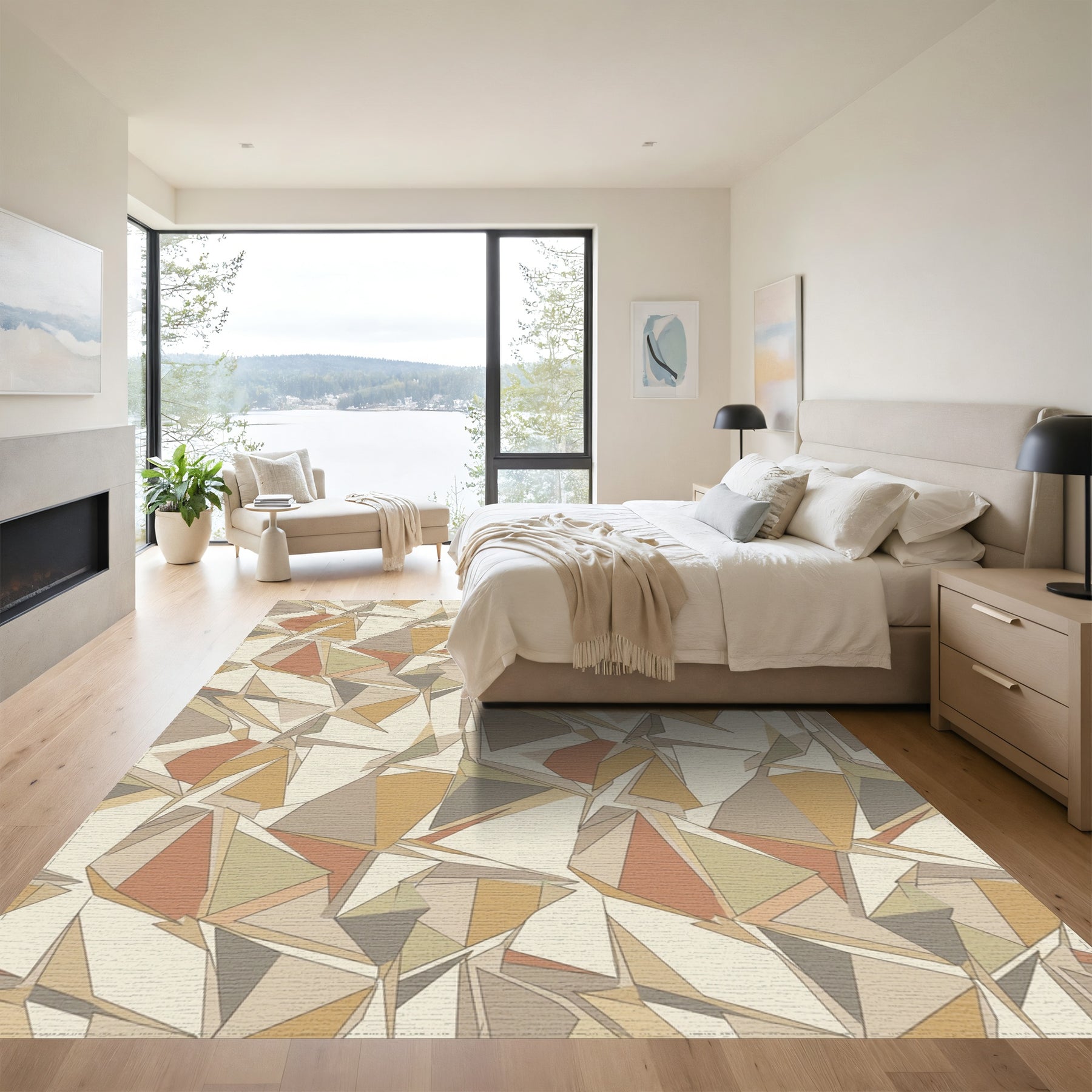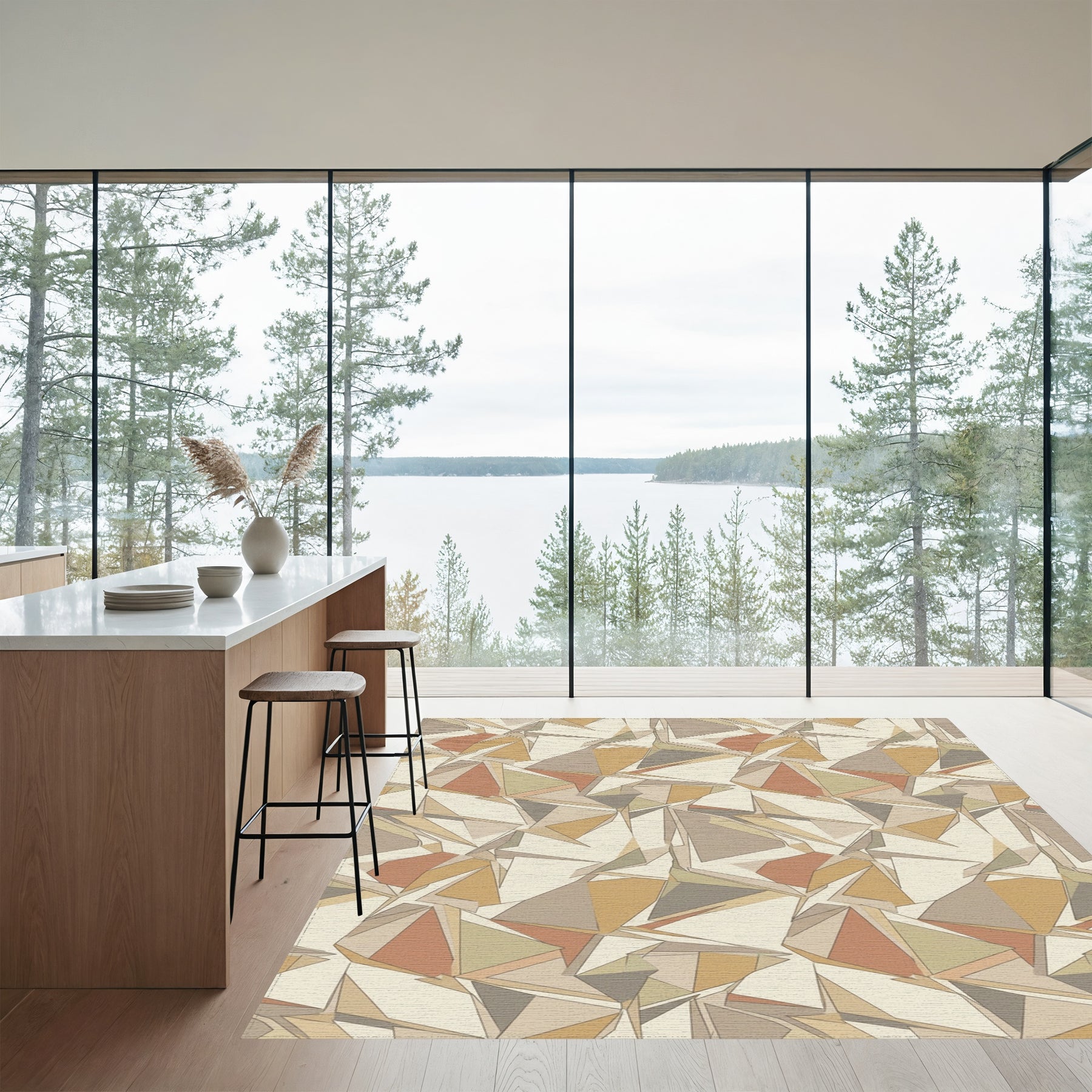 Flatwoven High Traffic Area Rug, Warm Earth Tones Geometric Facets Rug, Non Slip, Stain Resistant, Washable Area Rugs for Living Room, Bedroom Overview: