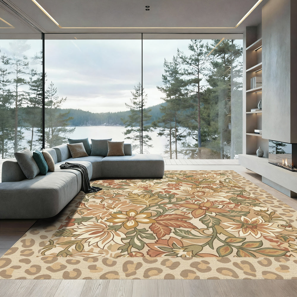 Neutral Earthy Brown Camouflage Cowhide Rug