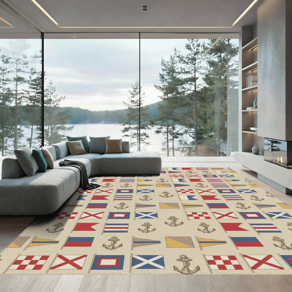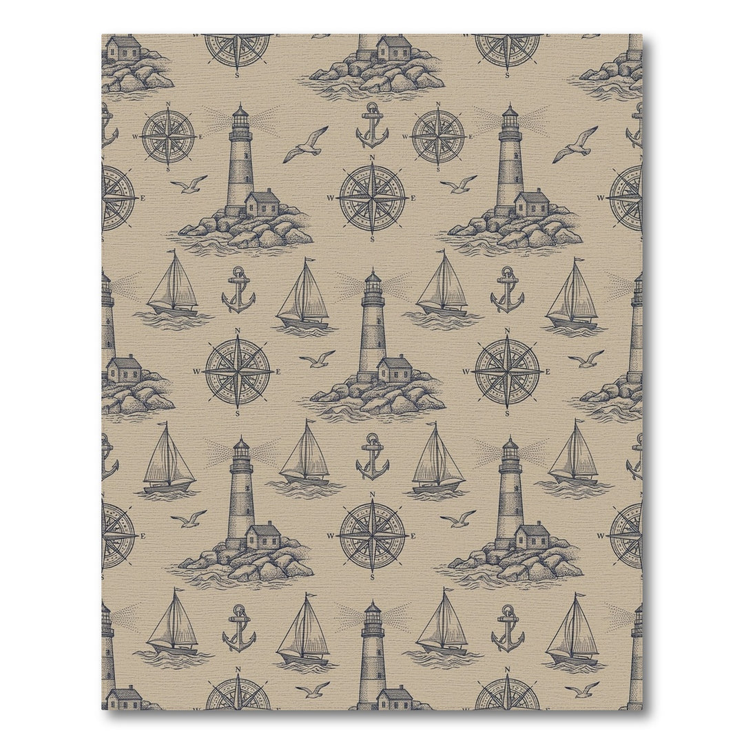 Nautical Adventure Lighthouse Sailboat Compass Rug