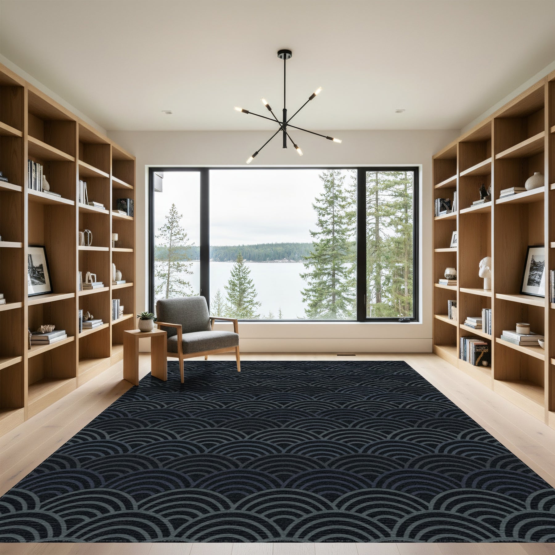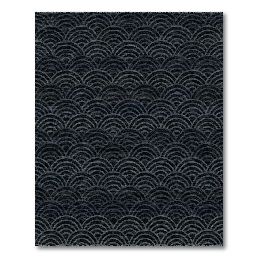 Flatwoven High Traffic Area Rug, Dark Blue Seigaiha Waves Rug, Non Slip, Stain Resistant, Washable Area Rugs for Living Room, Bedroom Overview: