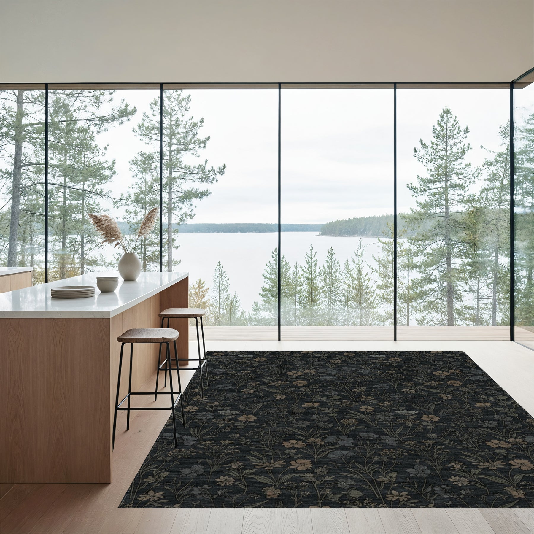 Flatwoven High Traffic Area Rug, Dark Botanical Garden Floral Rug, Non Slip, Stain Resistant, Washable Area Rugs for Living Room, Bedroom Overview: