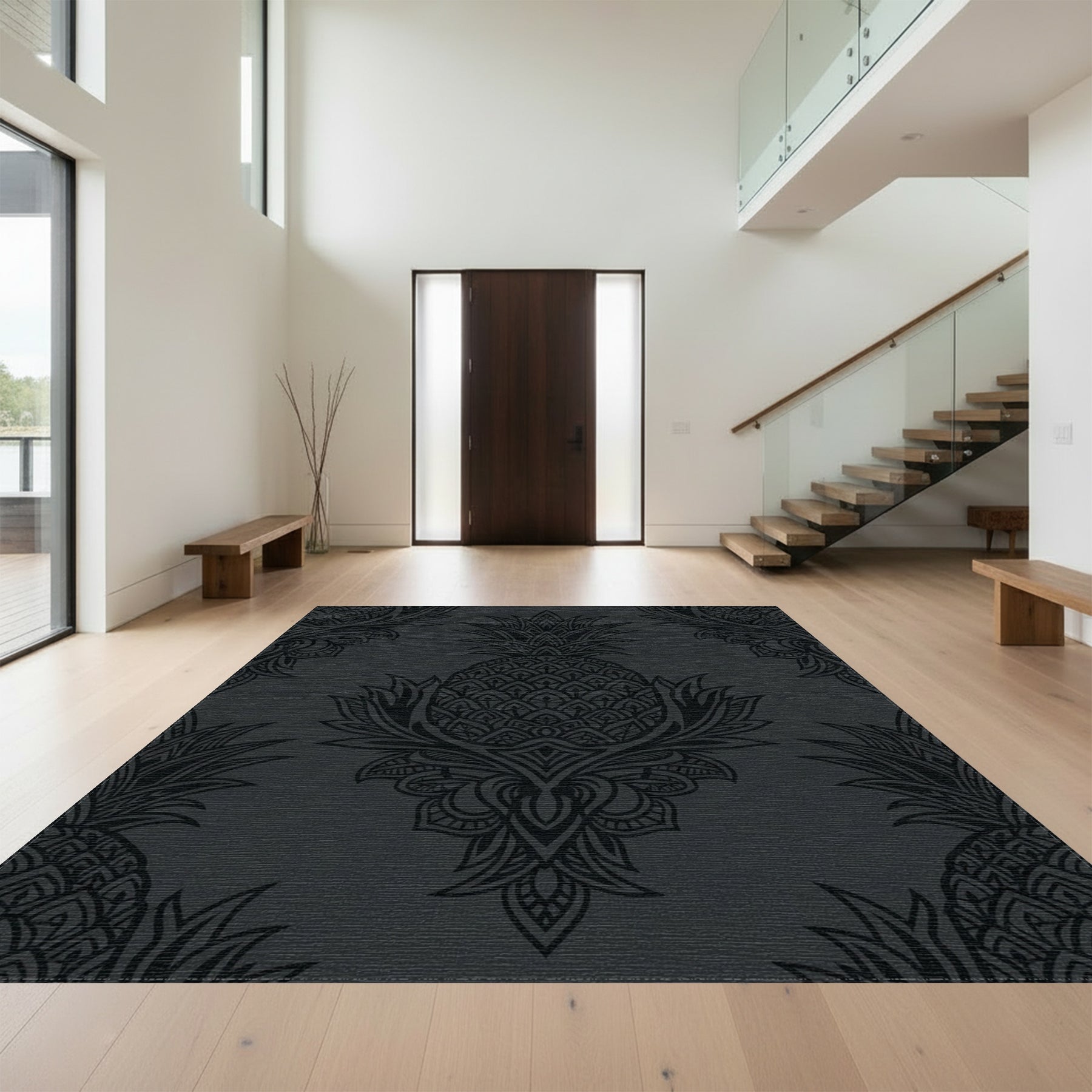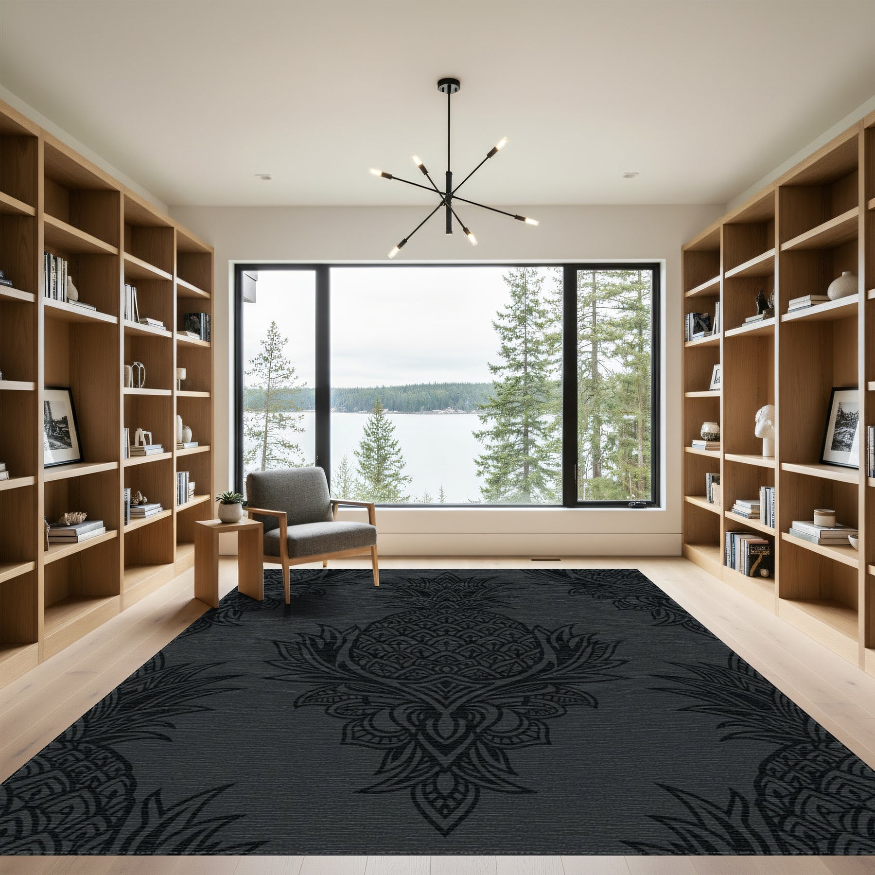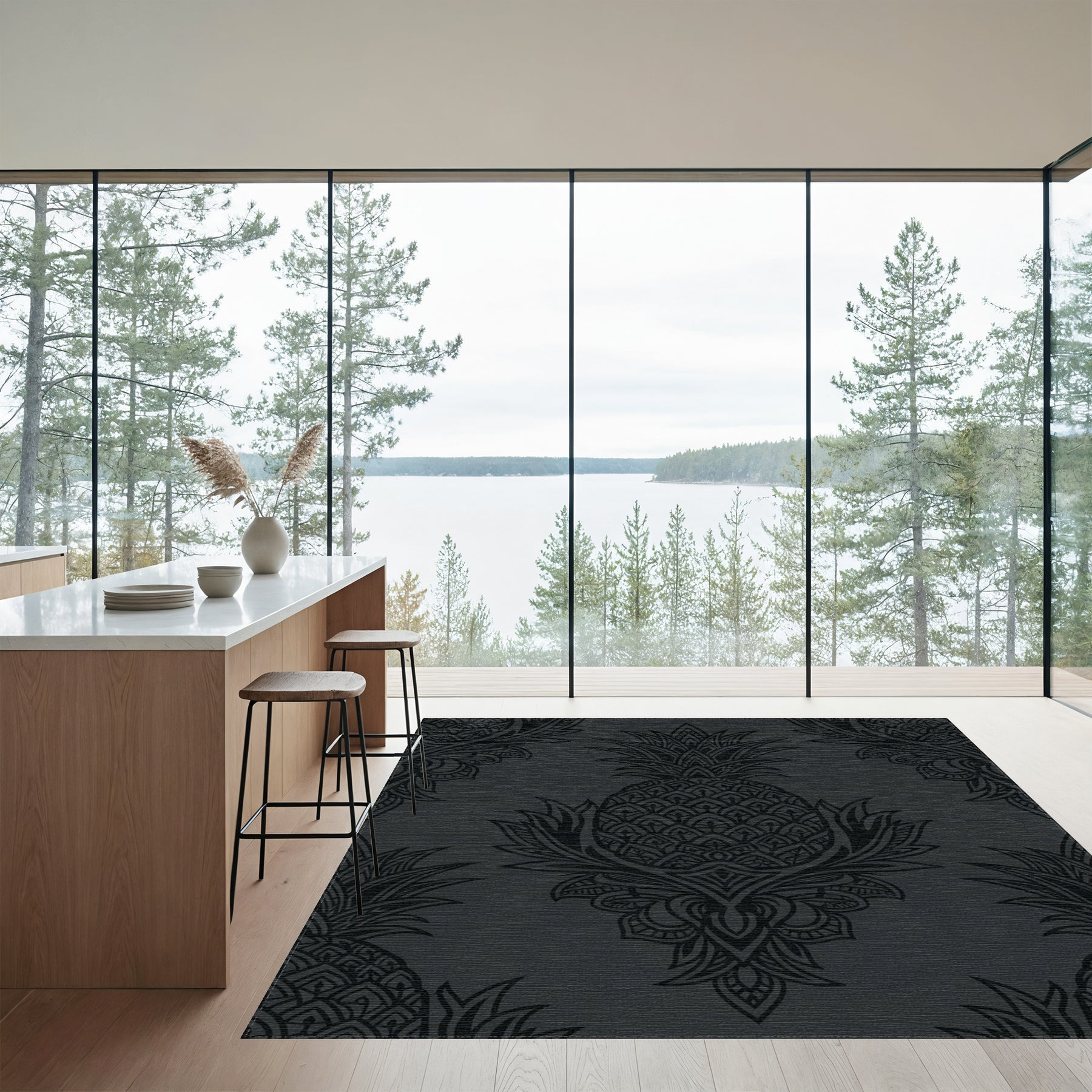 Flatwoven High Traffic Area Rug, Dark Gray Ornate Pineapple Illustration Rug, Non Slip, Stain Resistant, Washable Area Rugs for Living Room, Bedroom Overview: