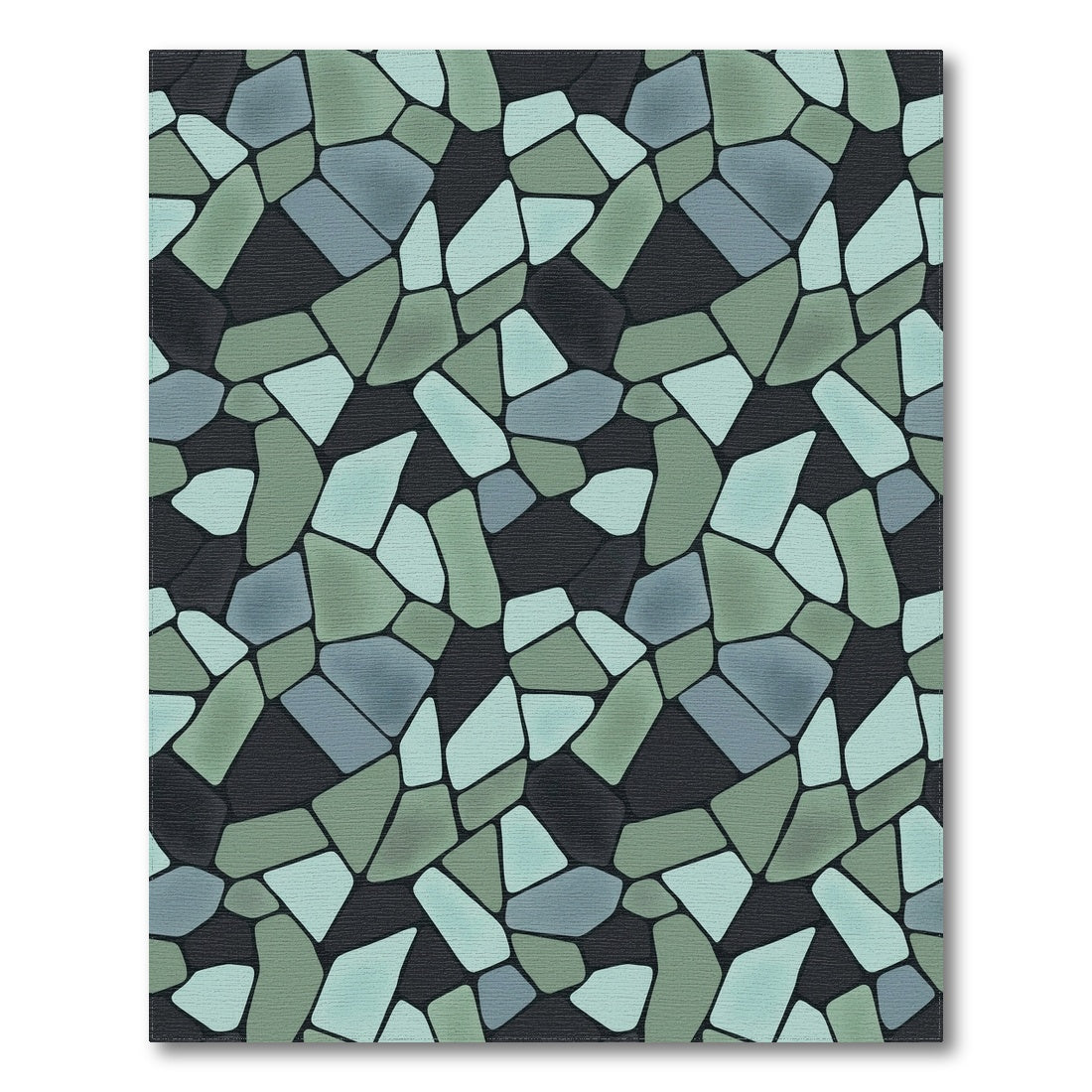 Flatwoven High Traffic Area Rug, Irregular Stone mosaic Blue Green Rug, Non Slip, Stain Resistant, Washable Area Rugs for Living Room, Bedroom Overview: