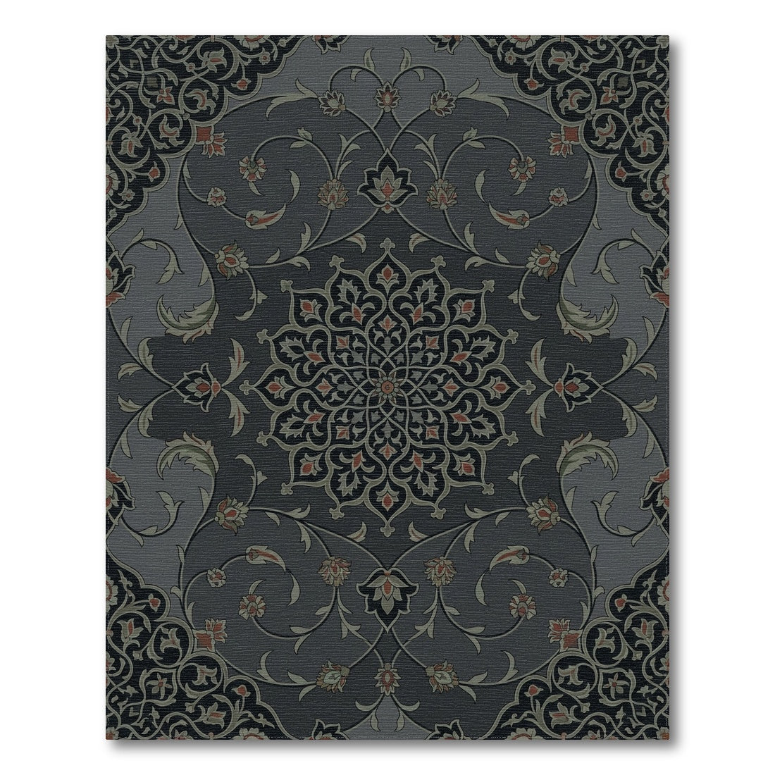 Flatwoven High Traffic Area Rug, Midnight Crimson Floral Medallion Rug, Non Slip, Stain Resistant, Washable Area Rugs for Living Room, Bedroom Overview: