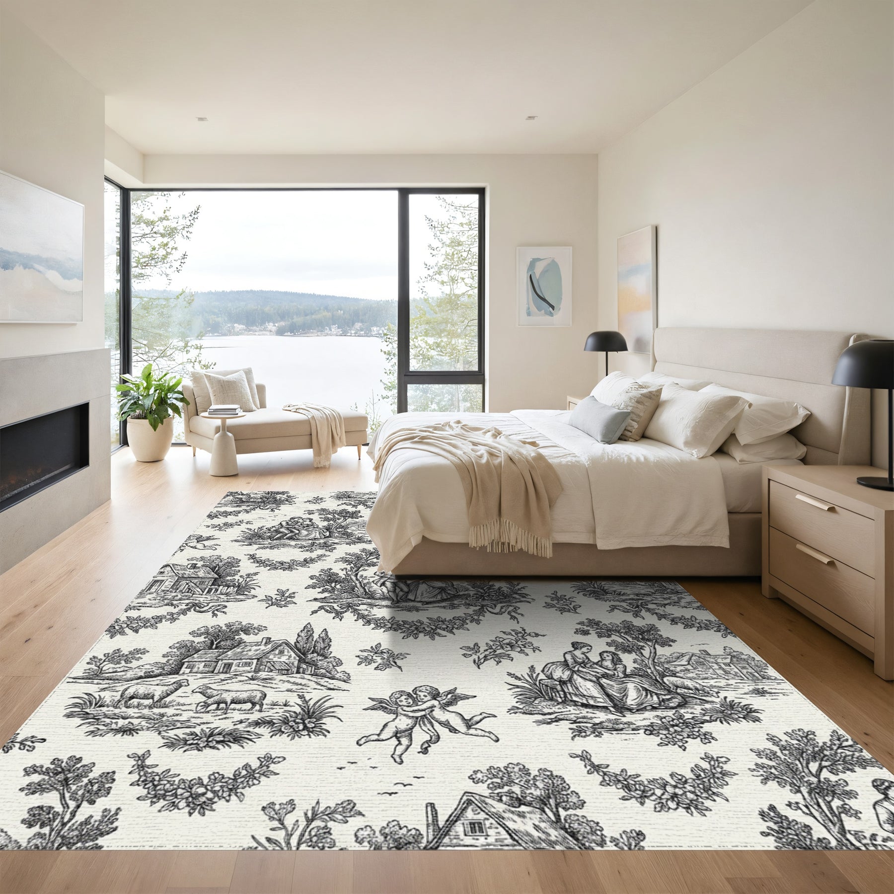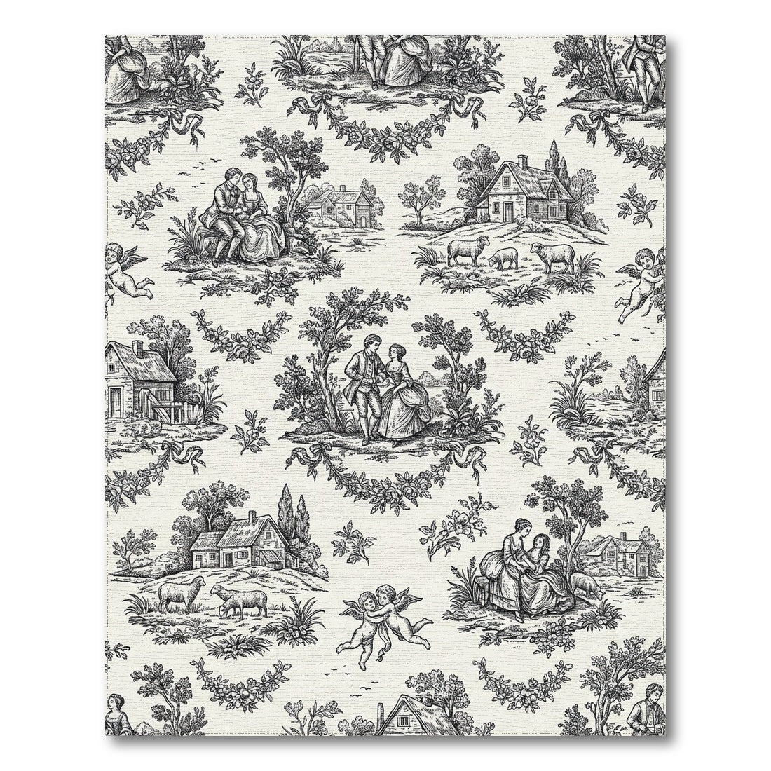 Flatwoven High Traffic Area Rug, Vintage Romantic Scene Black and White Rug, Non Slip, Stain Resistant, Washable Area Rugs for Living Room, Bedroom Overview: