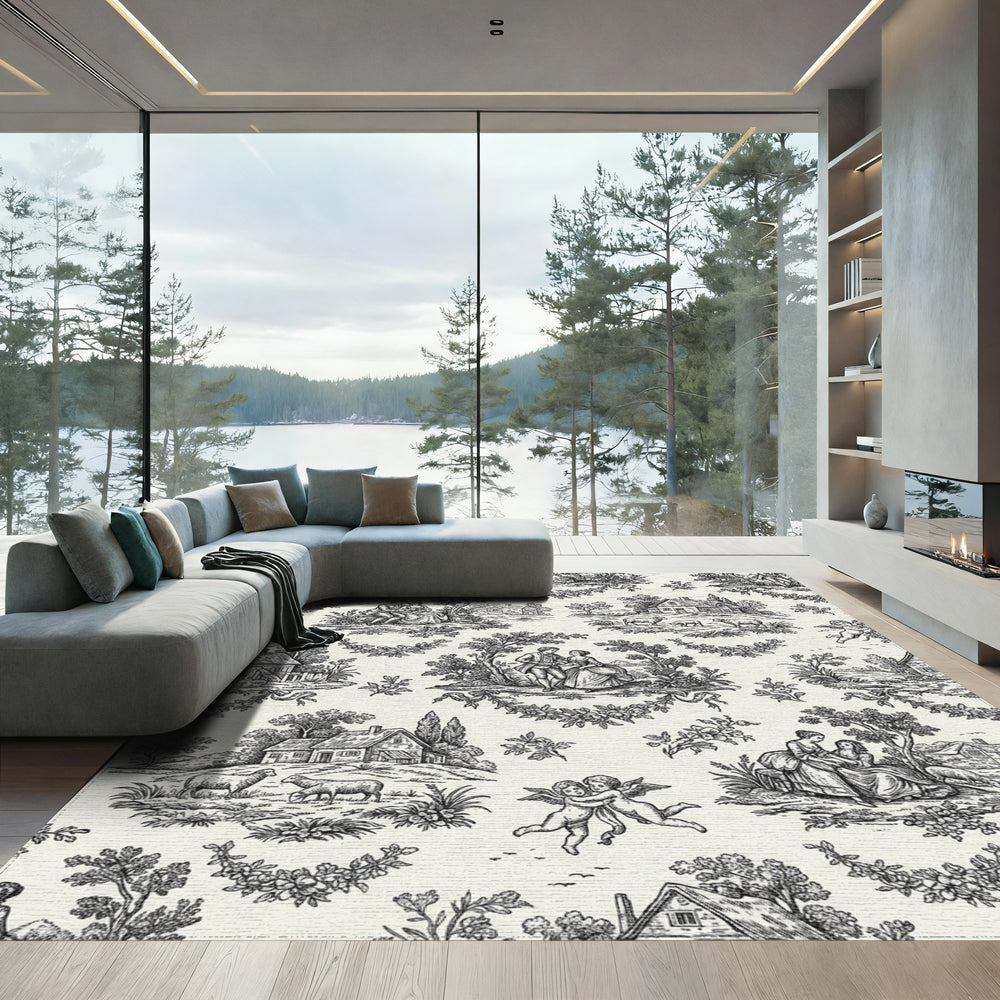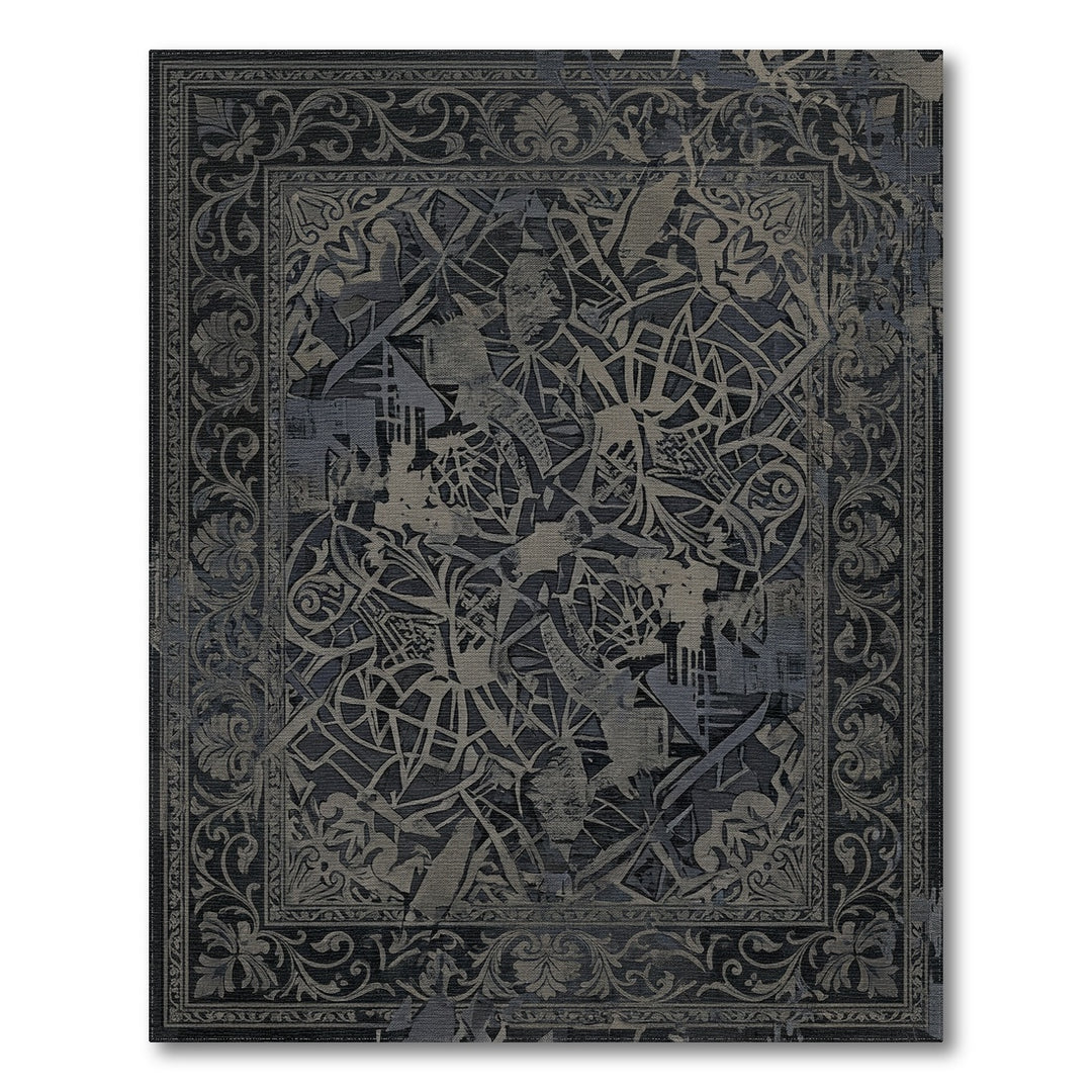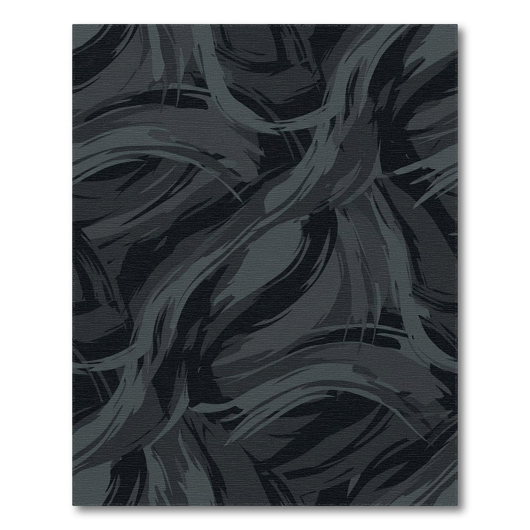 Dark Grayscale Abstract Brushstroke Waves Rug