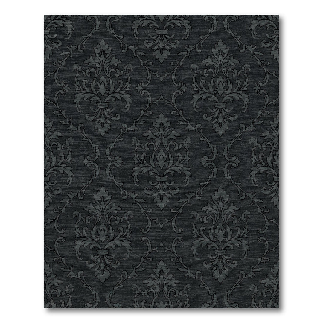 Dark Charcoal Damask Floral Arrangement Rug