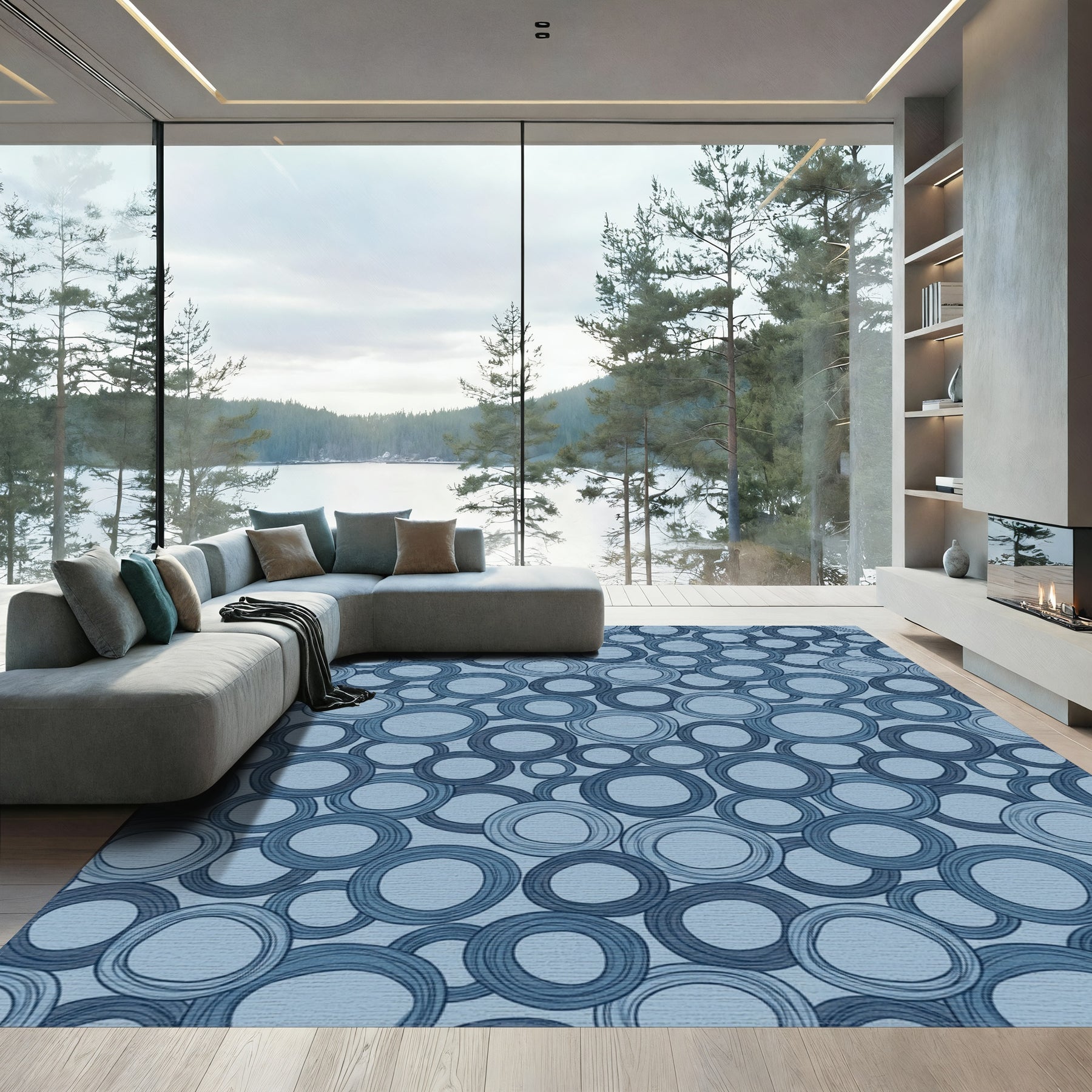 Flatwoven High Traffic Area Rug, Blue Irregular Circles Arrangement Rug, Non Slip, Stain Resistant, Washable Area Rugs for Living Room, Bedroom Overview: