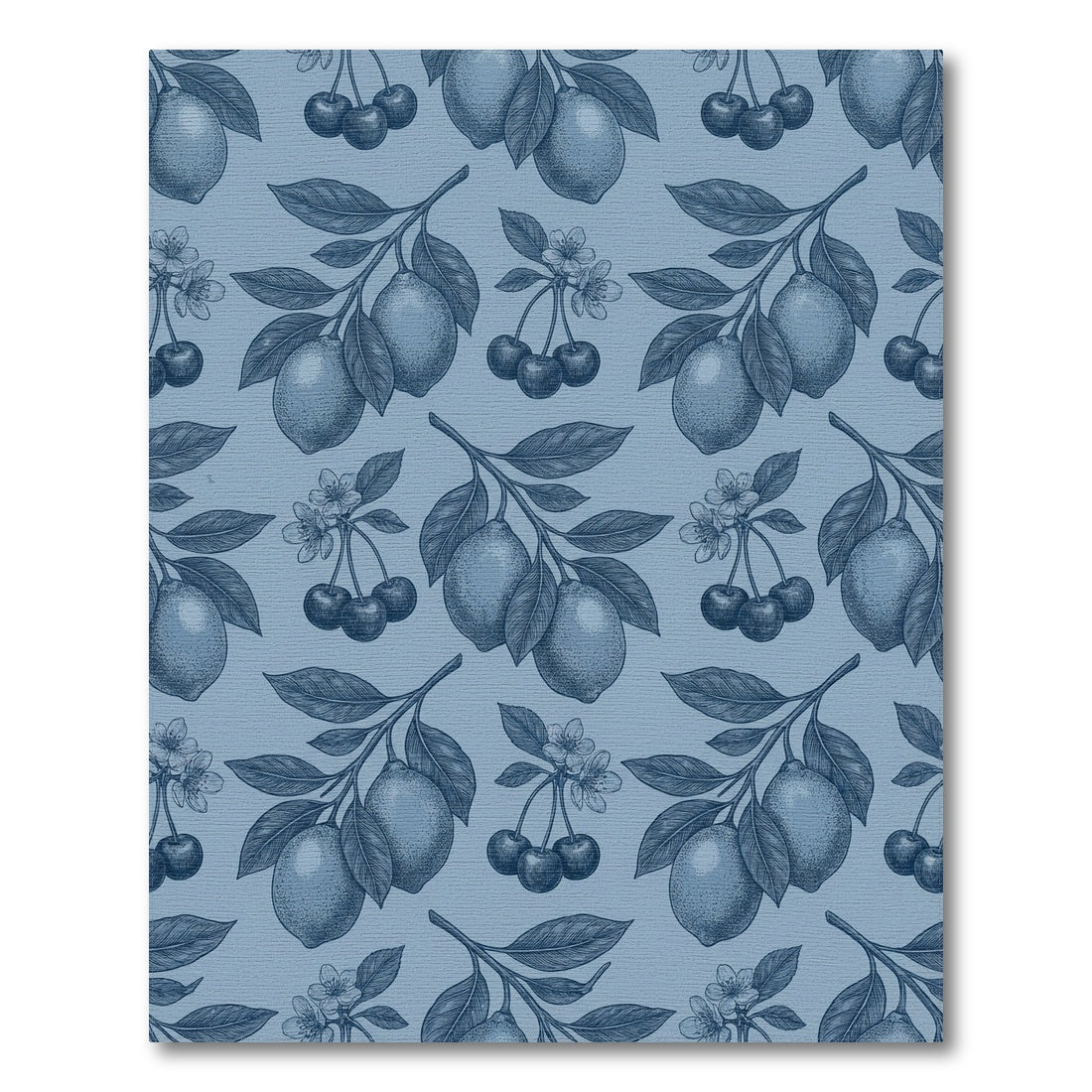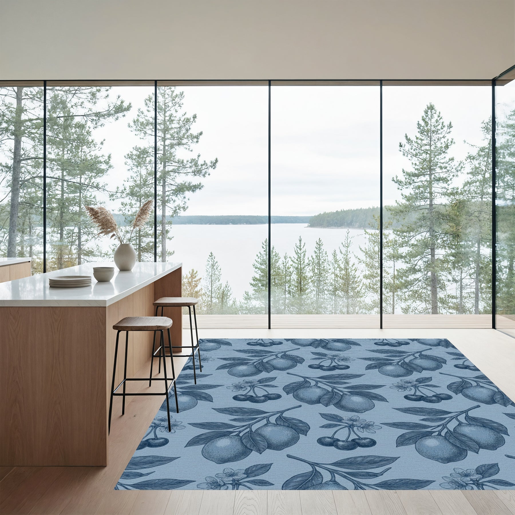 Flatwoven High Traffic Area Rug, Blue Lemon Cherry Botanical Repeat Rug, Non Slip, Stain Resistant, Washable Area Rugs for Living Room, Bedroom Overview: