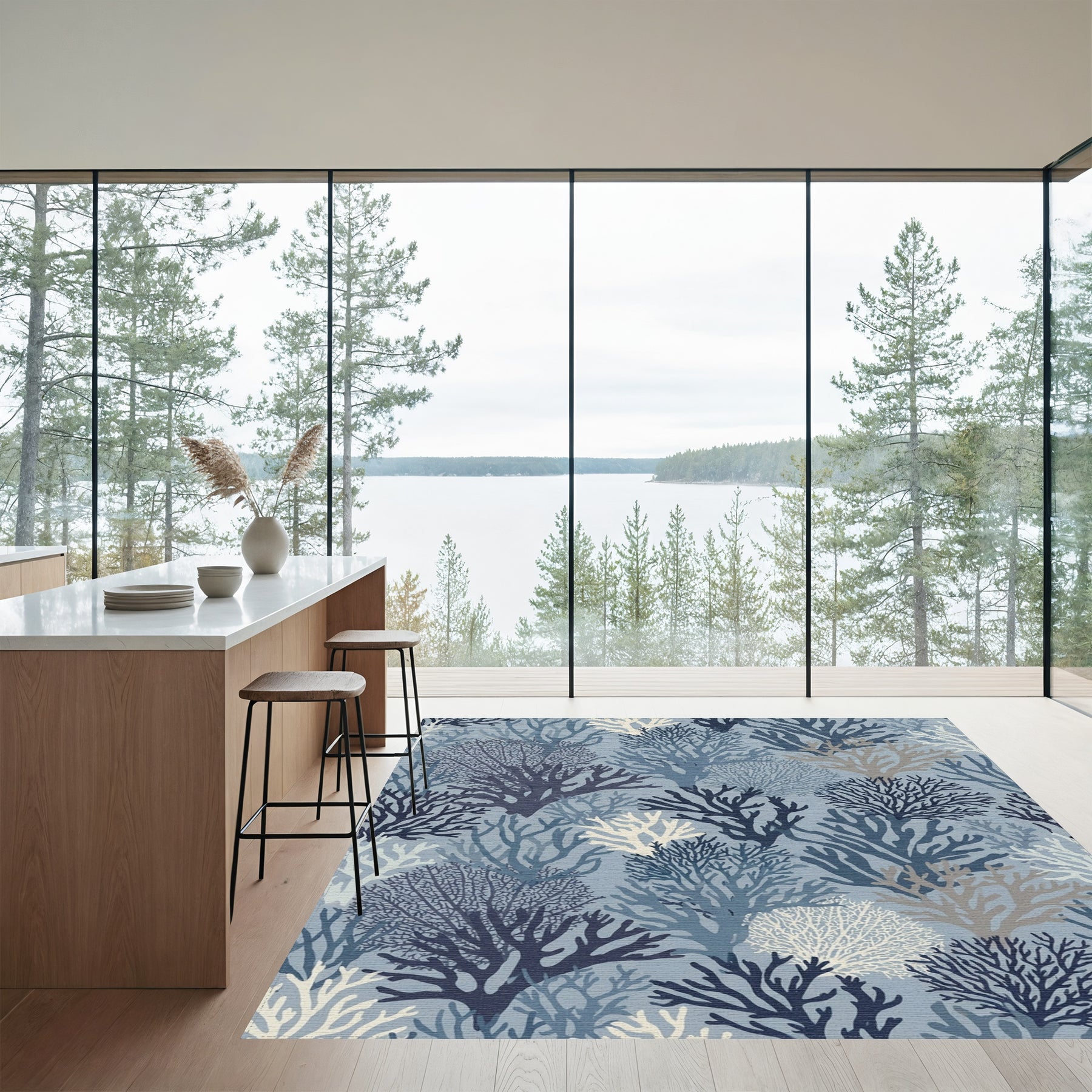 Flatwoven High Traffic Area Rug, Deep Blue Coral Reef Collection Rug, Non Slip, Stain Resistant, Washable Area Rugs for Living Room, Bedroom Overview: